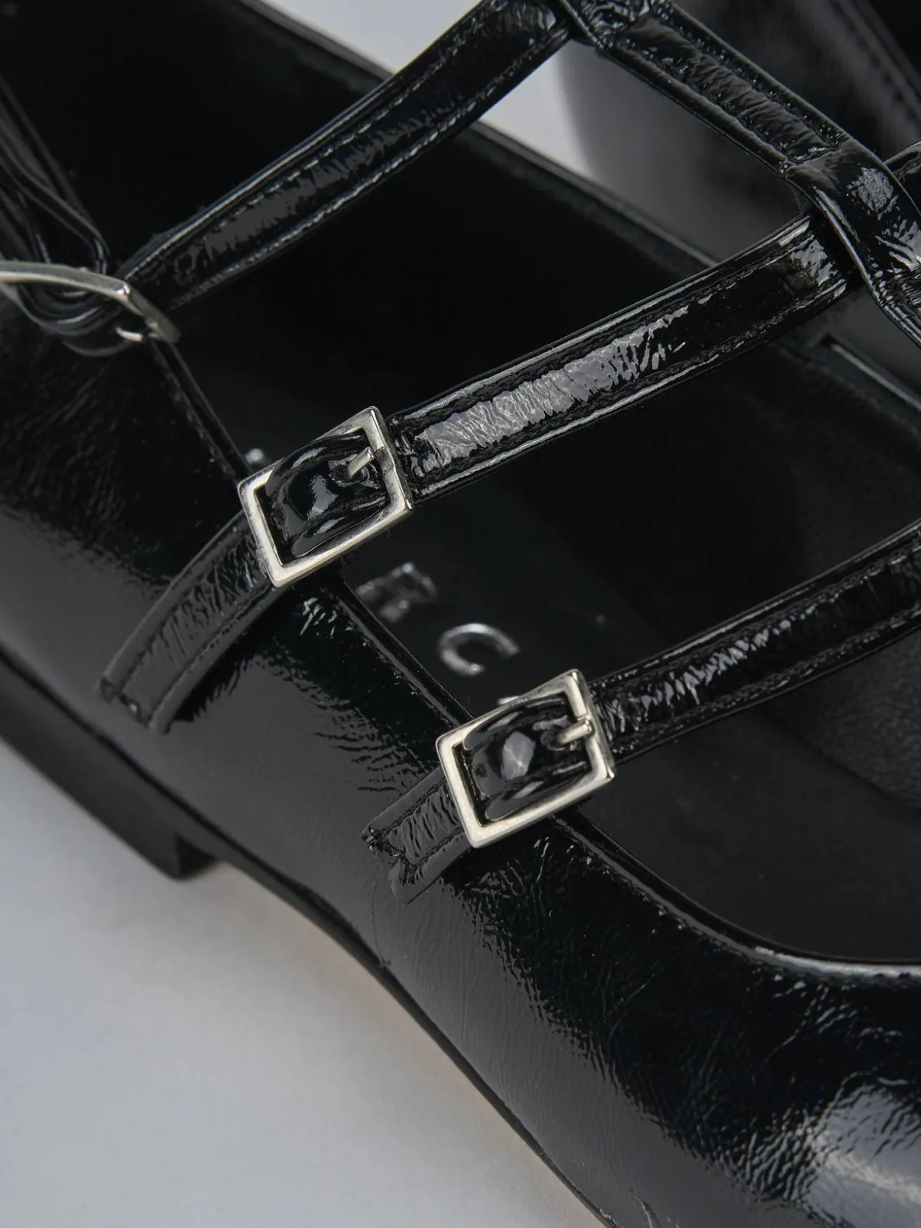 Il design presenta una tomaia in morbida pelle effetto verniciato che dona un tocco di raffinatezza.