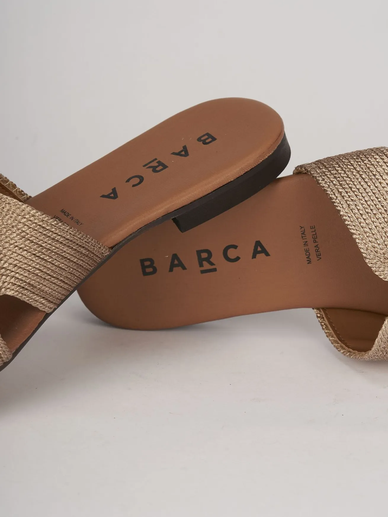 La tomaia è arricchita da una particolarissima fascia intrecciata, che aggiunge un dettaglio distintivo e alla moda.