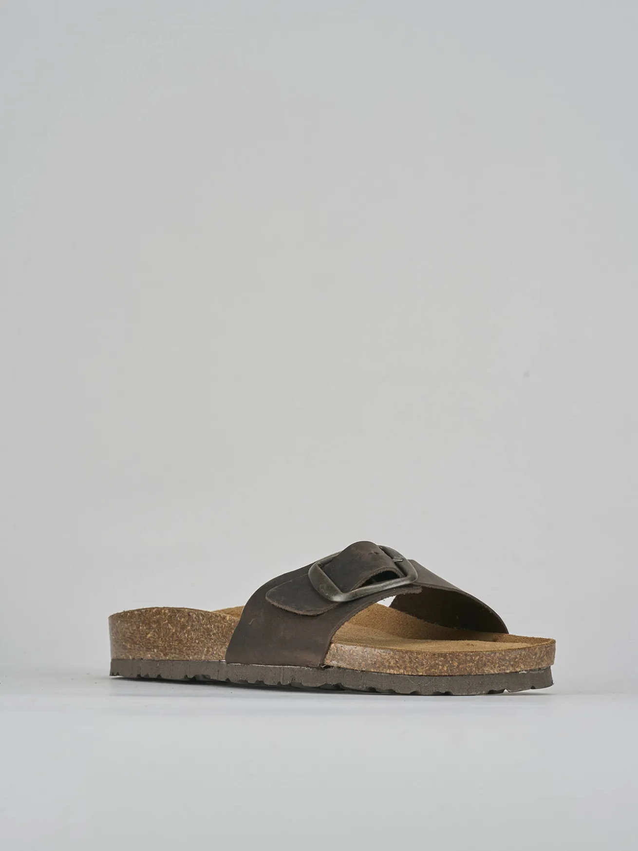 Realizzate con una tomaia in morbida pelle, queste ciabatte presentano una fascia unica sulla parte anteriore del piede, arricchita da una fibbia regolabile che aggiunge un tocco di classe.