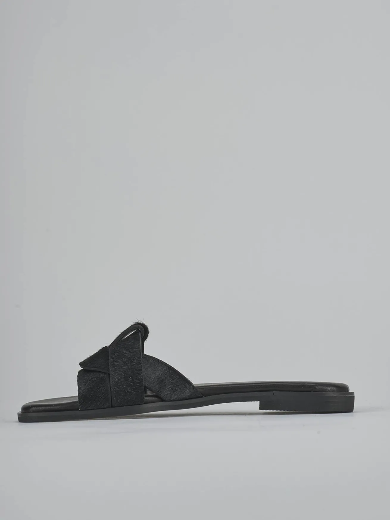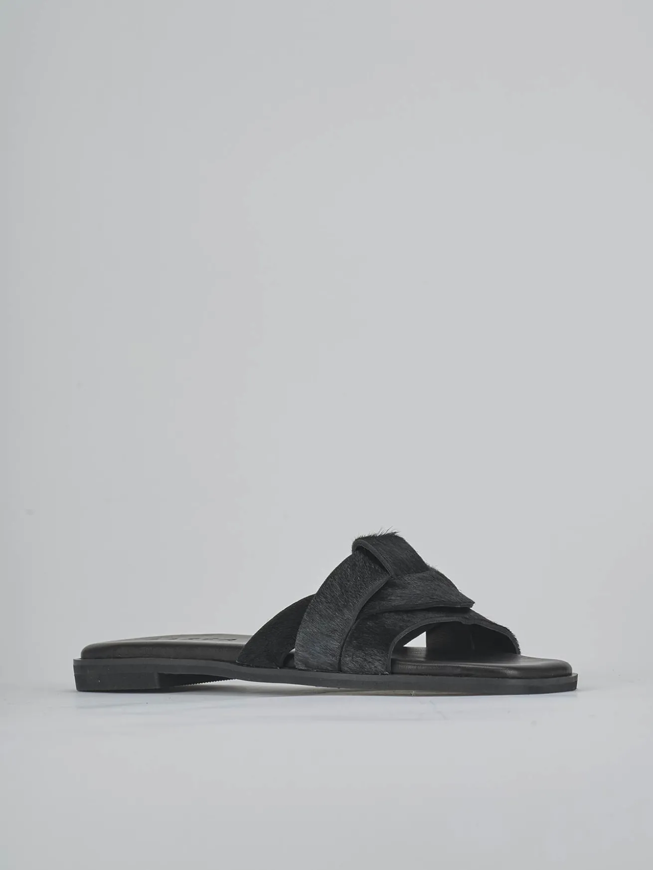 La tomaia in morbida pelle, ricoperta di raffinato cavallino, si sposa con una punta leggermente squadrata e una fascia unica a incastro.