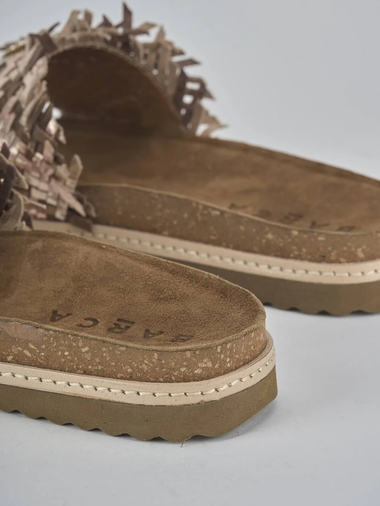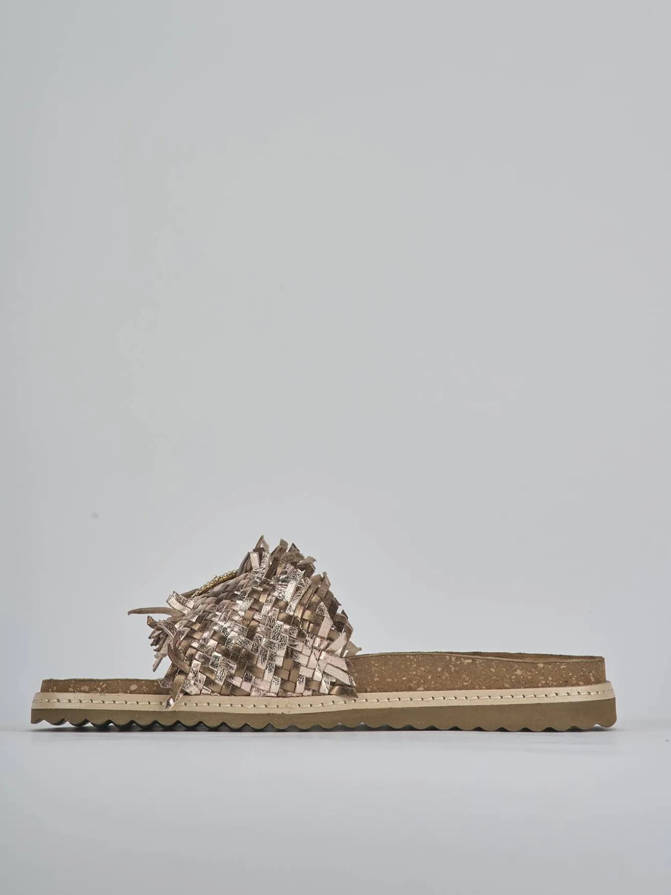 La tomaia è realizzata in morbida pelle laminata, finemente intrecciata, che dona un aspetto sofisticato e moderno.