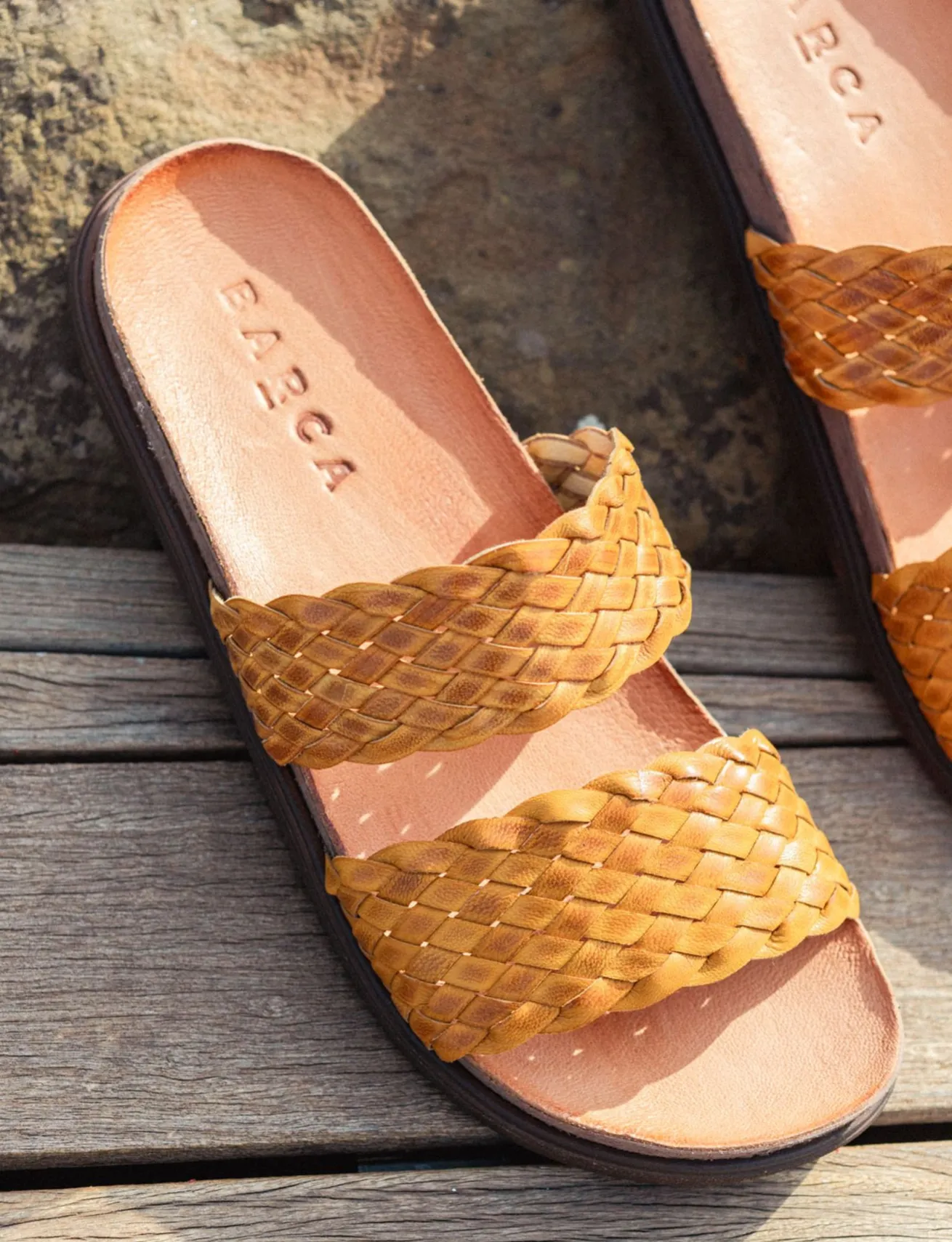 La tomaia è realizzata in morbida pelle finemente intrecciata, aggiungendo un tocco di raffinatezza al tuo look.