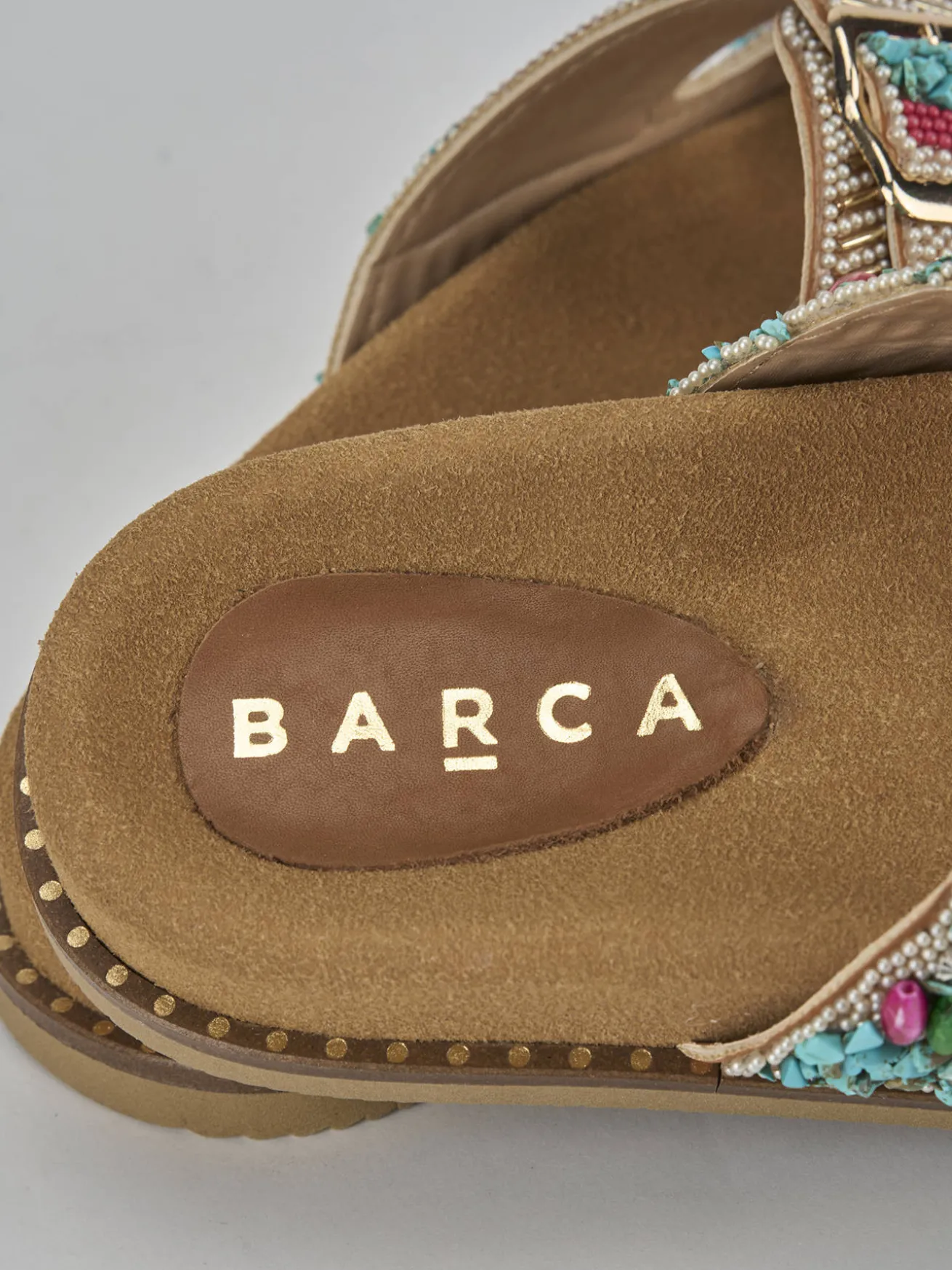 Realizzate in morbida pelle marrone, queste ciabatte presentano un tacco basso di 1 cm, ideale per un comfort quotidiano senza rinunciare all’eleganza.
