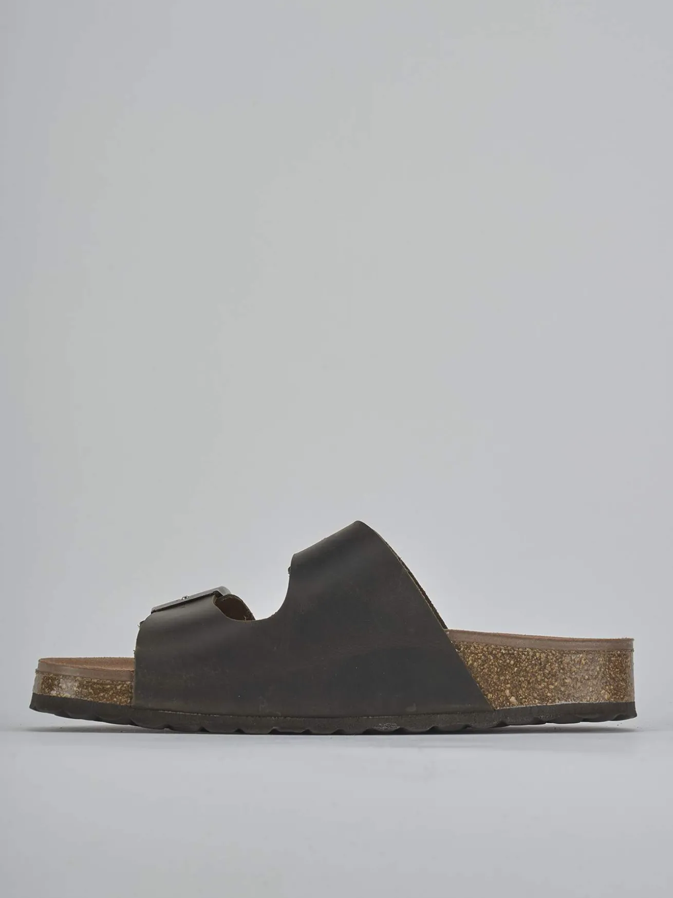 La tomaia è caratterizzata da due fasce in morbida pelle, arricchite da grandi fibbie regolabili, per un look raffinato e pratico.