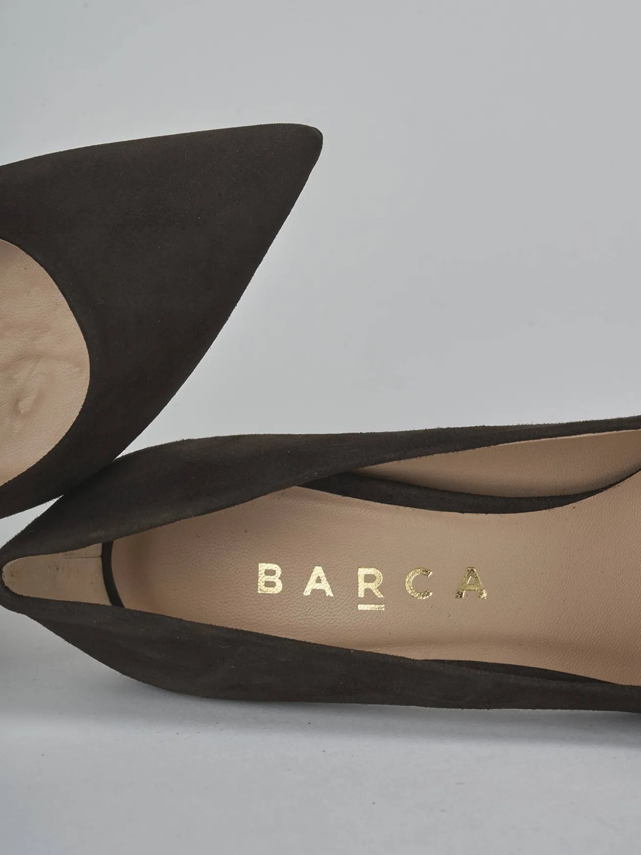 La tomaia, realizzata in morbido camoscio, offre un comfort avvolgente, mentre la punta sfilata e lo scollo a ‘U’ aggiungono una nota sofisticata.