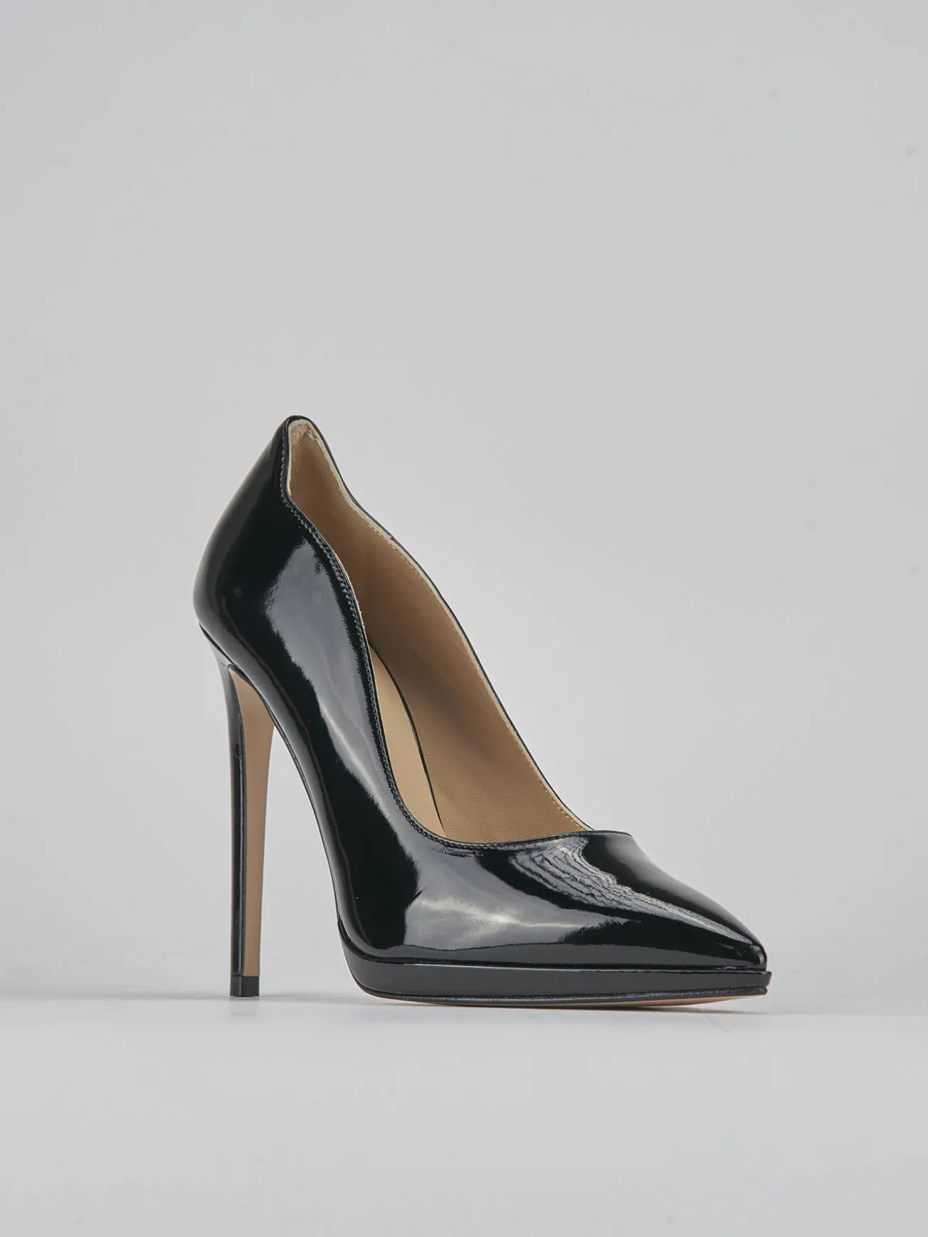 La tomaia in morbida pelle effetto verniciato dona un tocco di lusso e raffinatezza.