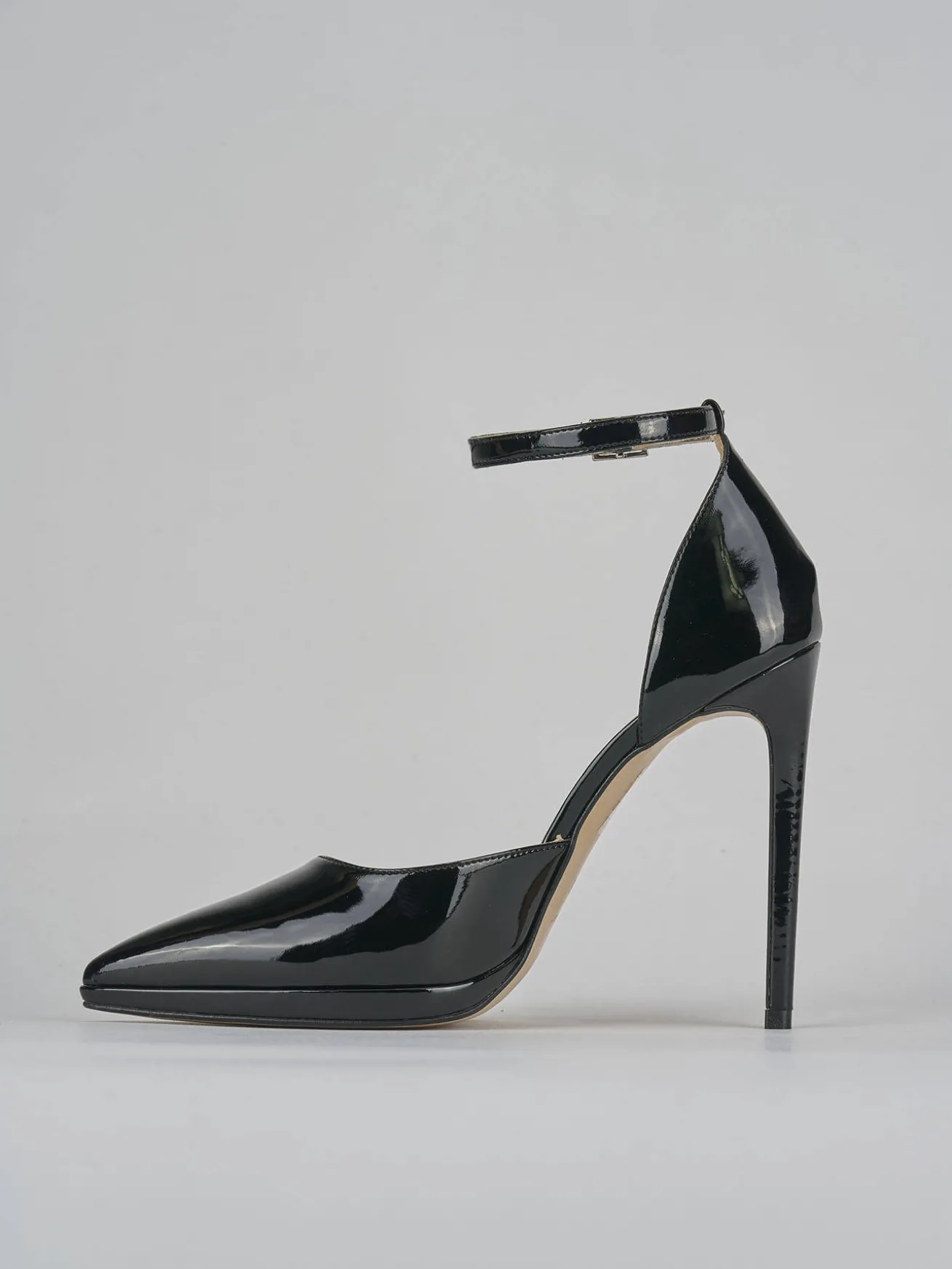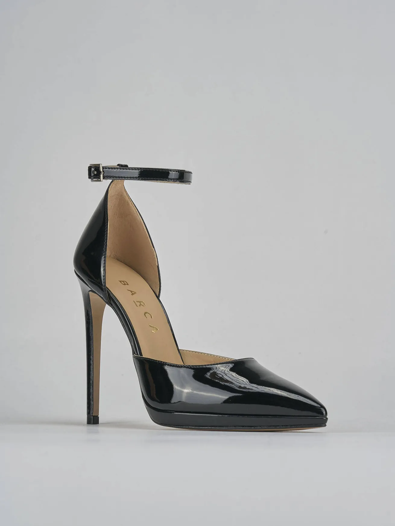La tomaia è realizzata in morbida pelle verniciata, con una punta sfilata e uno scollo dolce a ‘U’ che aggiungono un tocco di raffinatezza.