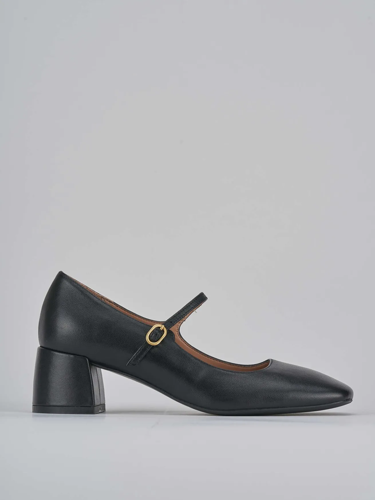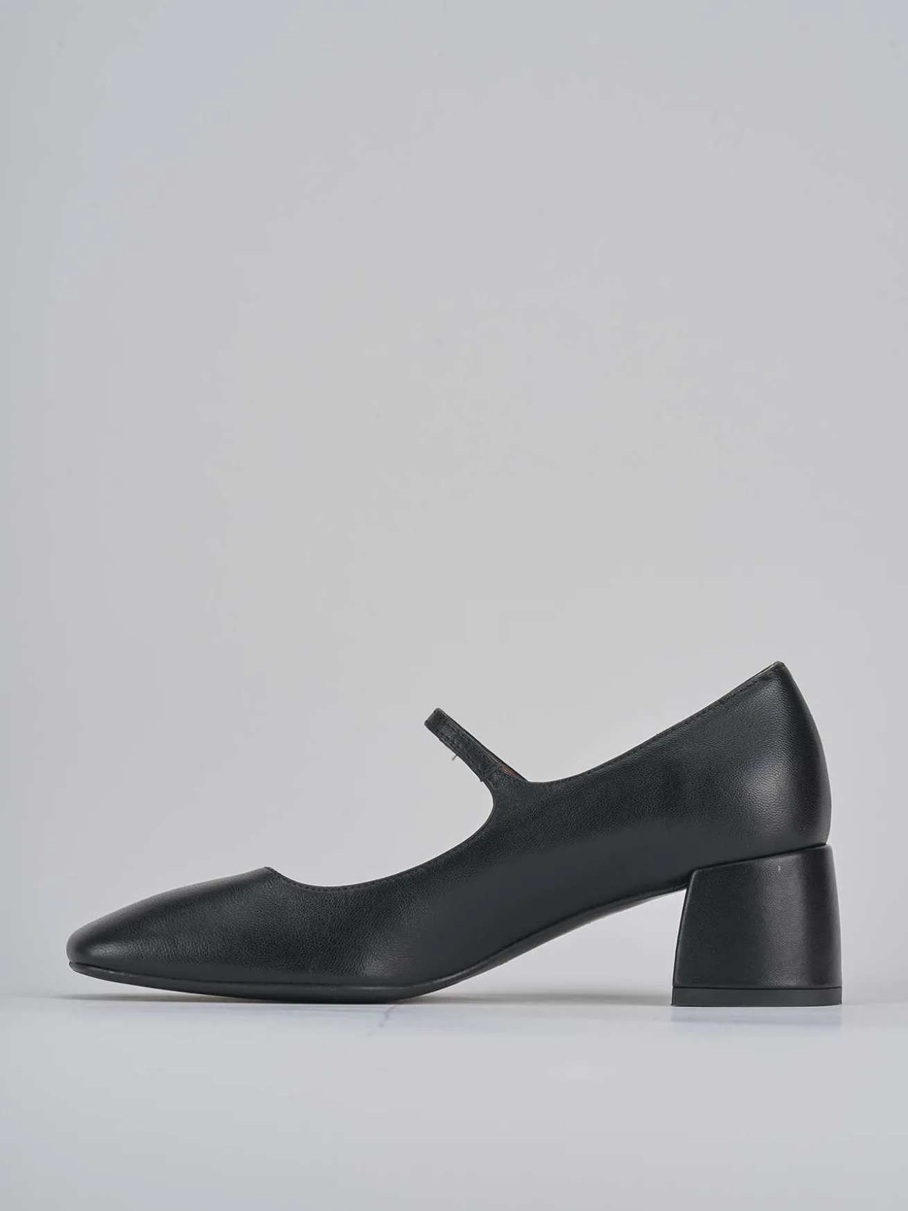 Bebè tacco 4.5 cm fondo in leggera gomma e soletto interno in vera pelle. Tomaia in morbida pelle nappata, punta squadrata, cinturino regolabile sul collo del piede e tacco grosso per un look cool adatto ad ogni occasione.