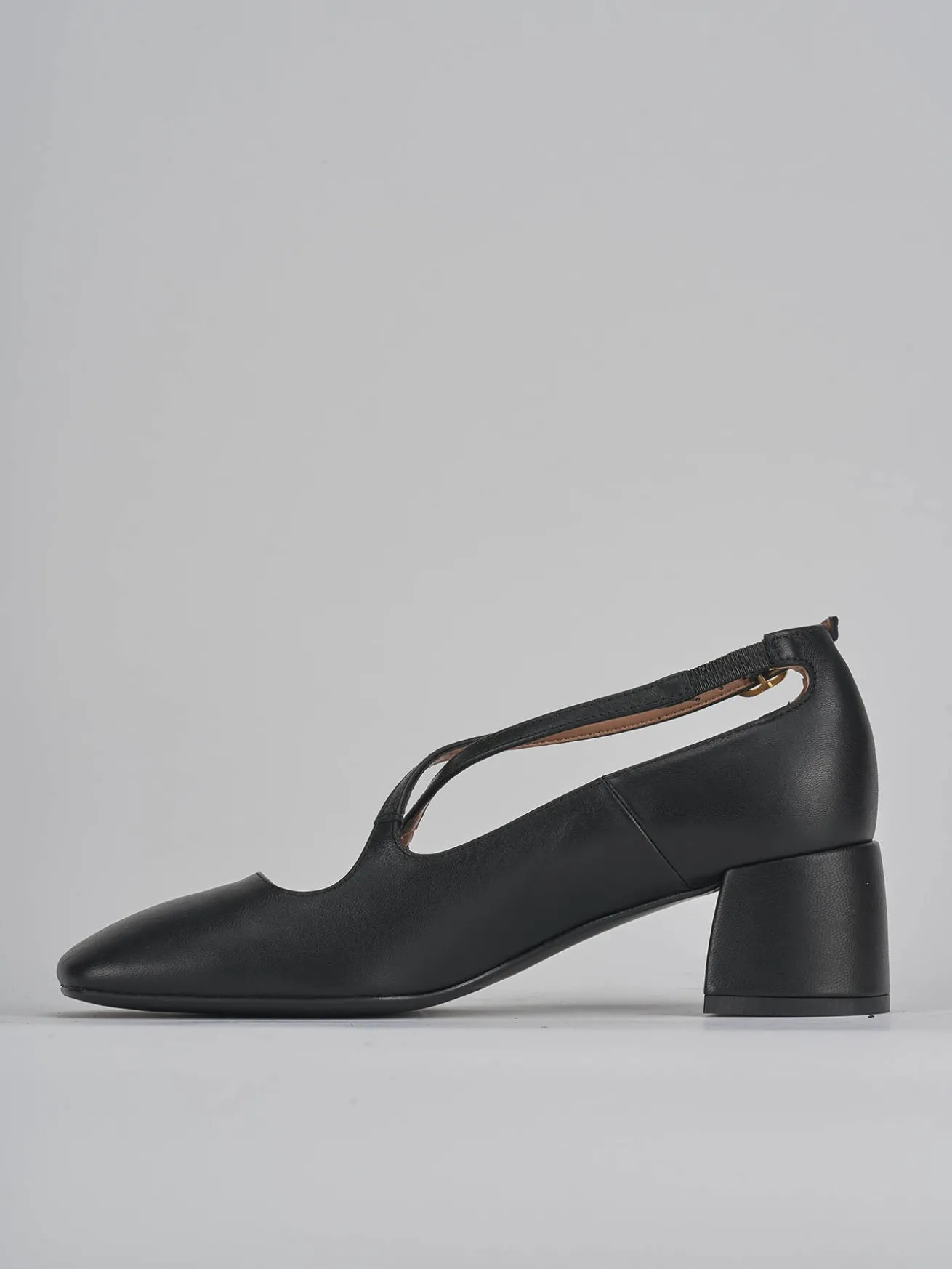 bebe’ tacco 4.5 cm fondo in gomma e soletto interno in vera pelle. tomaia in morbida pelle nappata, punta squadrata, fascette con incrocio con fibbia regolabile e tacco grosso per una camminata sicura. perfetto con un vestito o una gonna.
