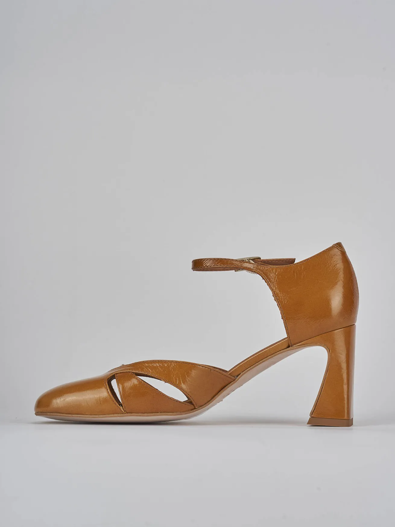Bebe’ tacco 7 cm fondo in cuoio e soletto interno in vera pelle. tomaia in morbida pelle effetto verniciato, punta leggermente squadrata, fasce intrecciate sulla punta, cinturino in caviglia con fibbia regolabile e tacco rocchetto per un look chic.