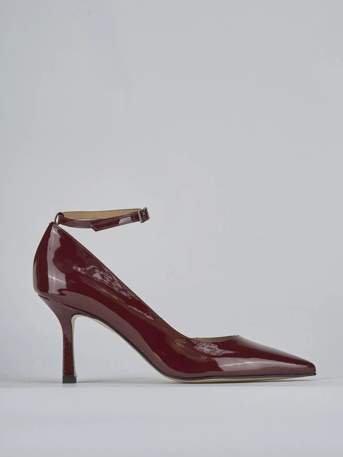 La tomaia in morbida pelle effetto verniciato dona un aspetto lucido e sofisticato, mentre la punta sfilata aggiunge un tocco di raffinatezza.