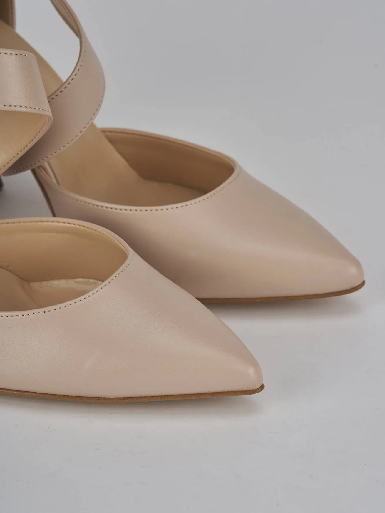 Decolte’ tacco 9 cm fondo in cuoio e soletto interno in vera pelle. tomaia in morbida pelle, punta sfilata, scollo a ‘U’, fascia incrociata sul collo del piede, con fibbia regolabile in caviglia, aperto sui lati e tacco grosso stabile. Perfetto per le tue occasioni più speciali.
