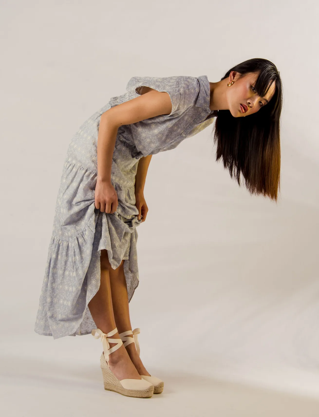 Espadrilla zeppa 9 cm, fondo gomma e soletto interno in vera pelle. tomaia in morbido tessuto, punta chiusa, tallone scoperto e laccetto per un look perfetto per l’estate.