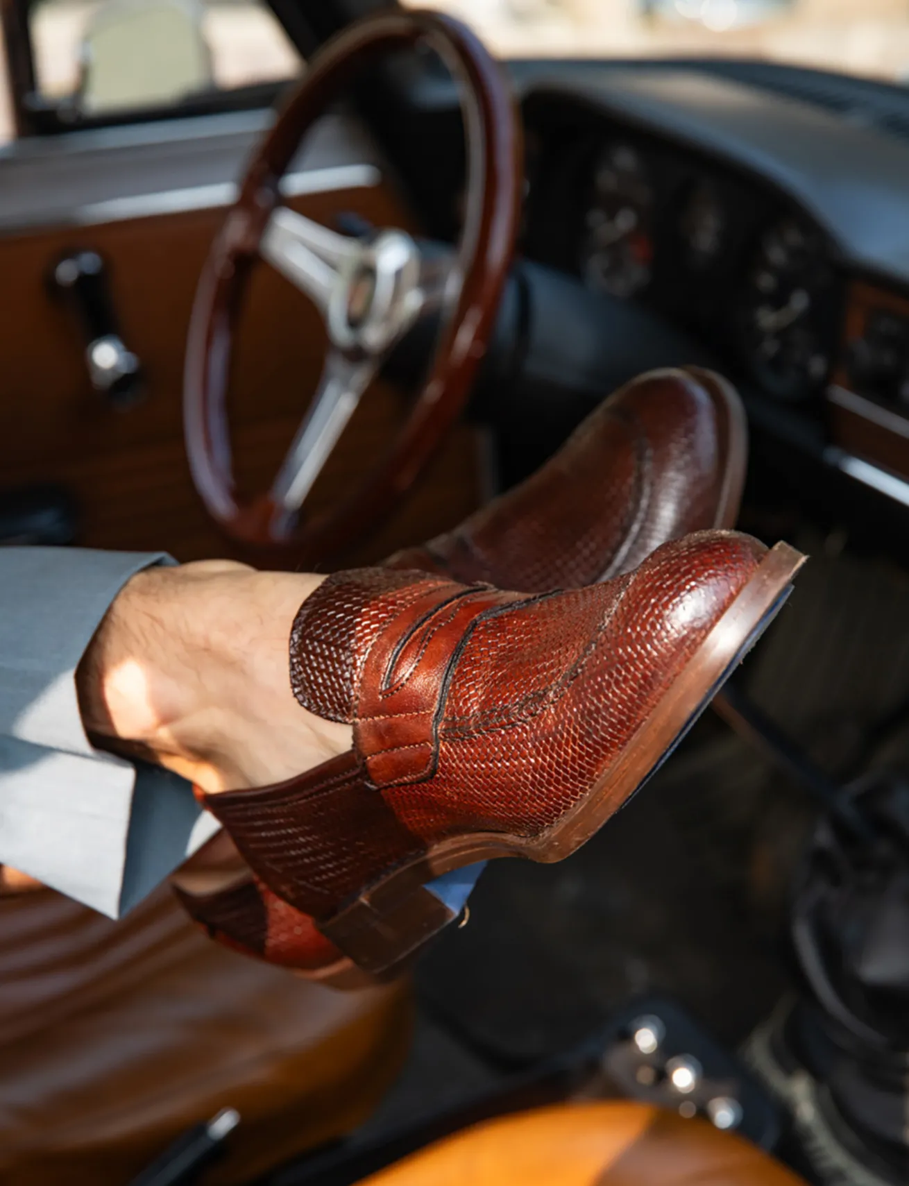 Realizzati in morbidissima pelle stampata con un raffinato effetto intrecciato, questi mocassini sono il connubio perfetto tra classe e comfort.