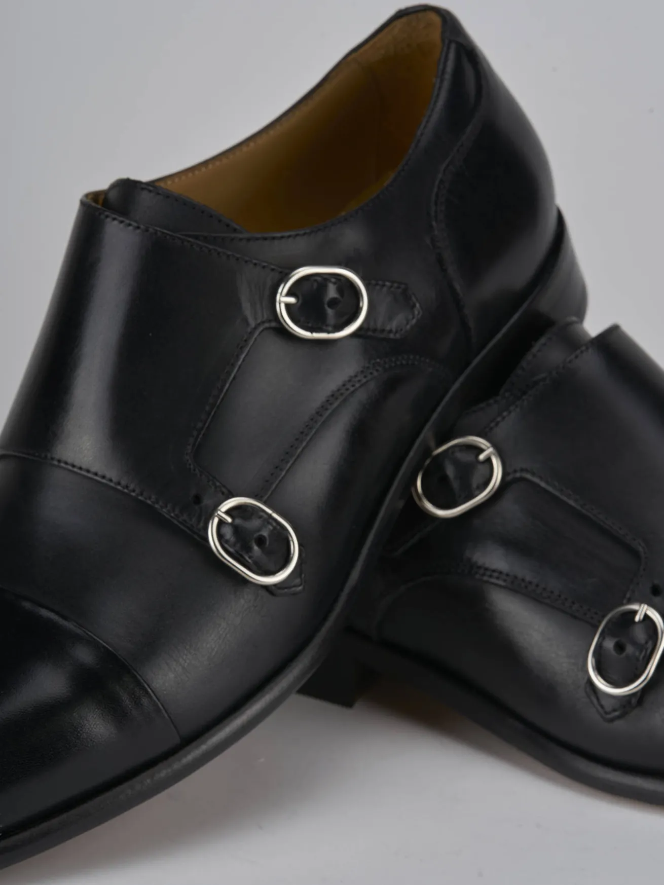 Le cuciture visibili aggiungono un tocco di classe, mentre la chiusura con doppia fibbia offre un dettaglio distintivo.