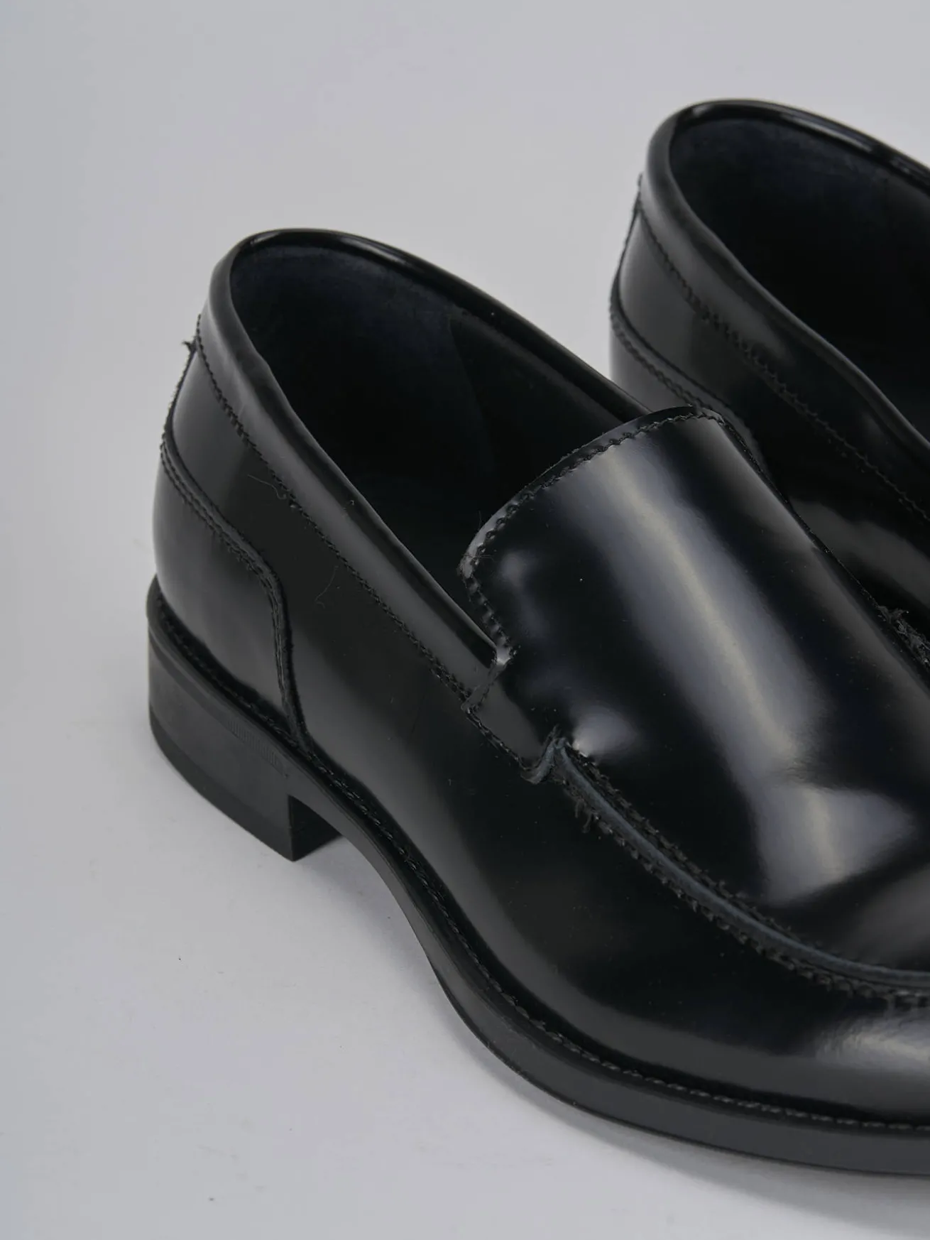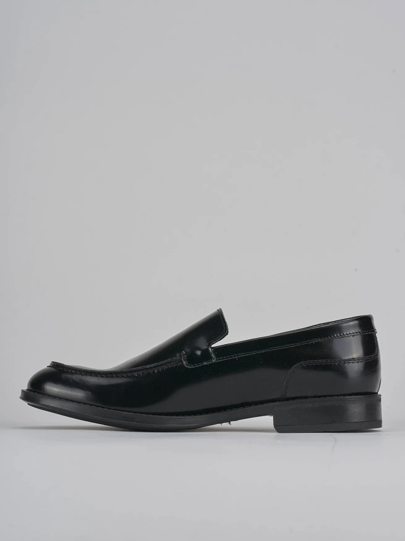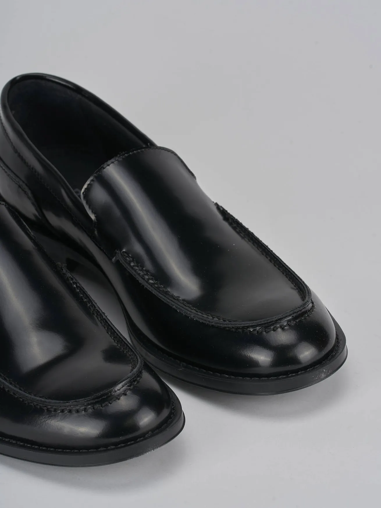 La tomaia in morbida pelle liscia con effetto lucido dona un tocco sofisticato, mentre la punta leggermente squadrata e le cuciture visibili aggiungono un dettaglio distintivo.