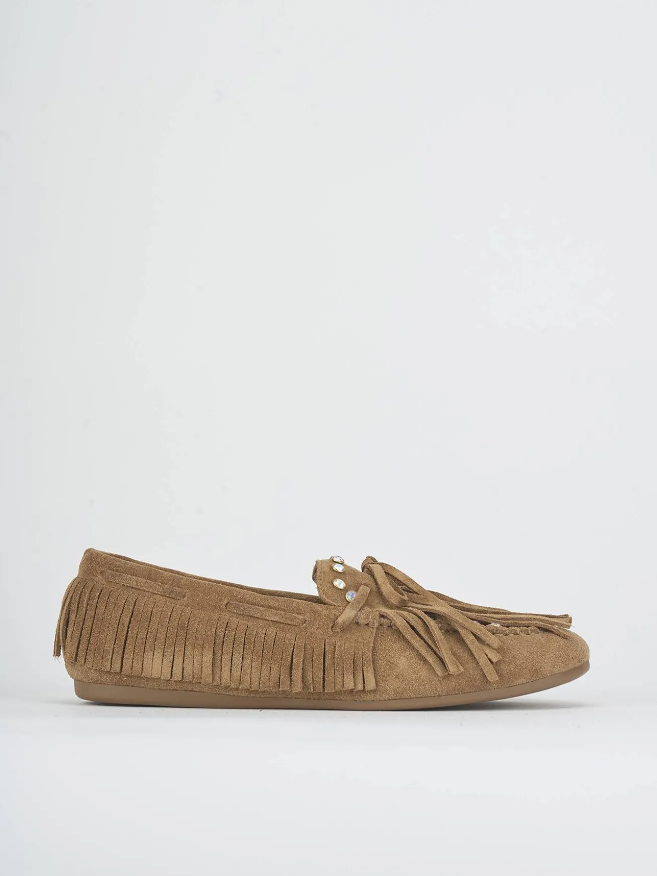 Realizzati in morbido camoscio, questi mocassini presentano eleganti frange laterali che aggiungono un tocco di stile raffinato.