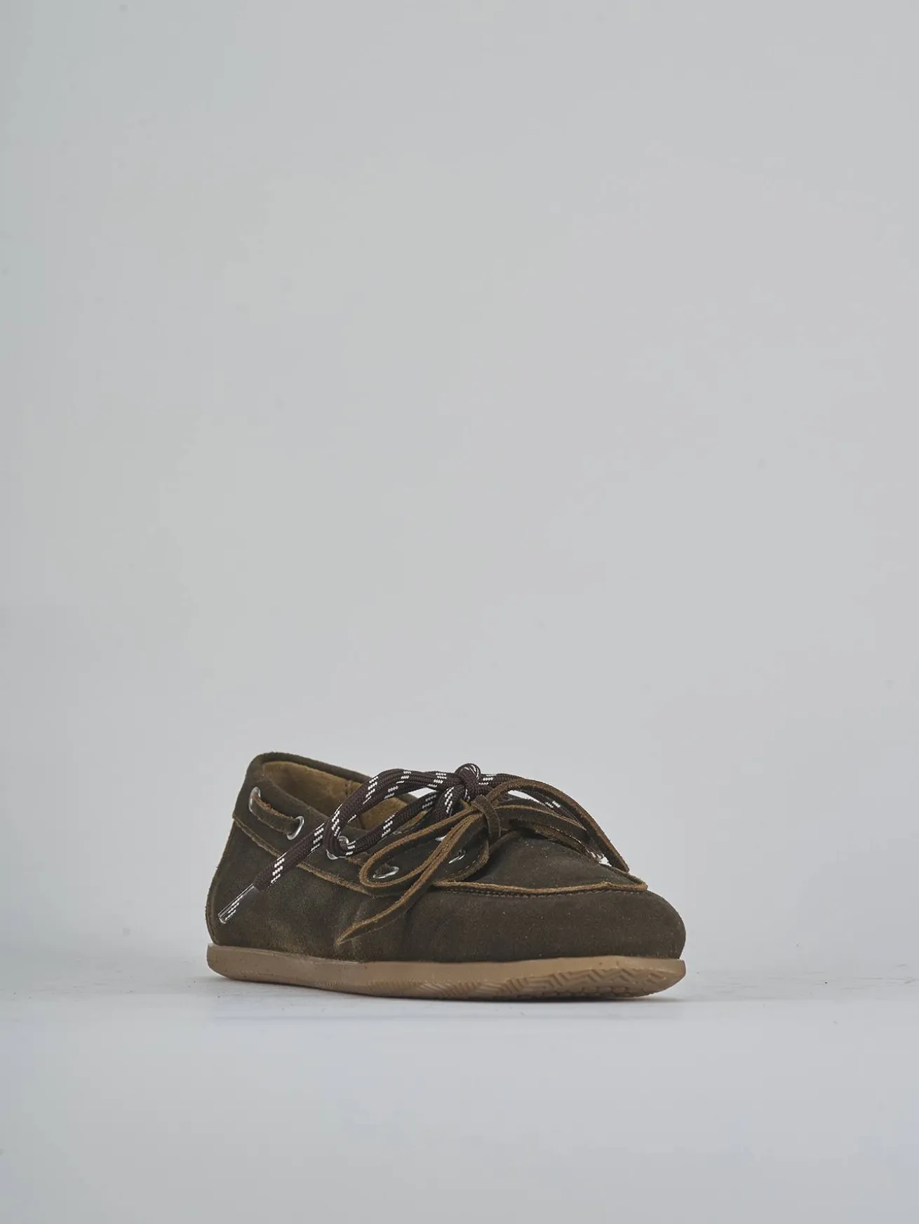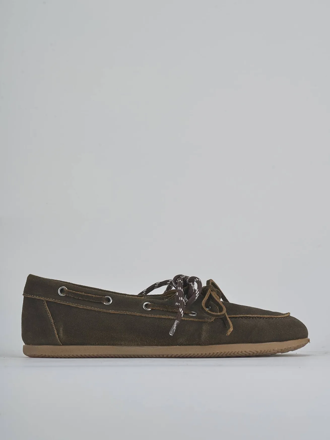 La tomaia in morbida pelle nabuk presenta una punta affusolata e cuciture a mano, esaltando l’artigianalità del design.