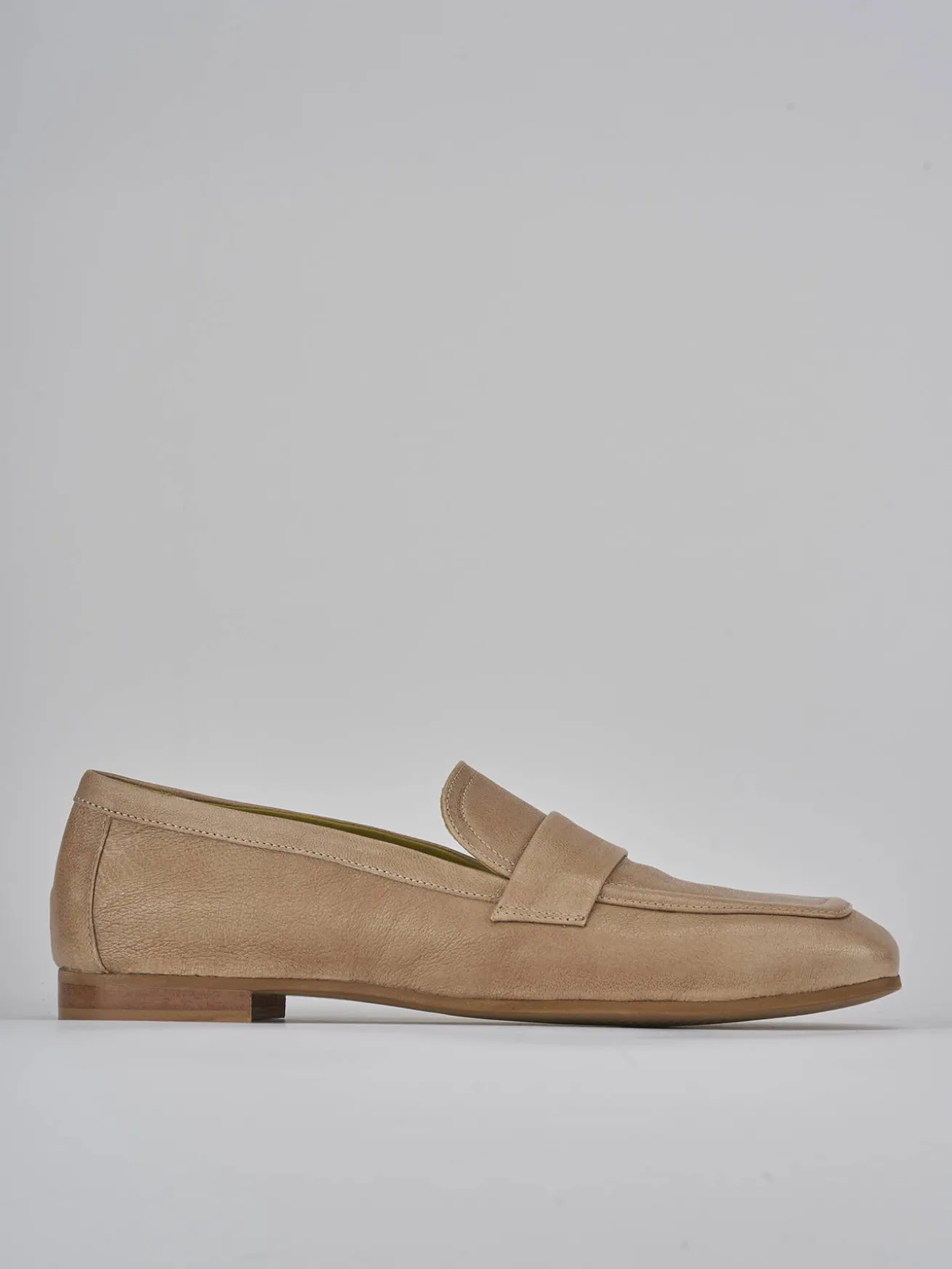 La punta squadrata e le cuciture visibili a mano aggiungono un tocco di artigianalità e raffinatezza.