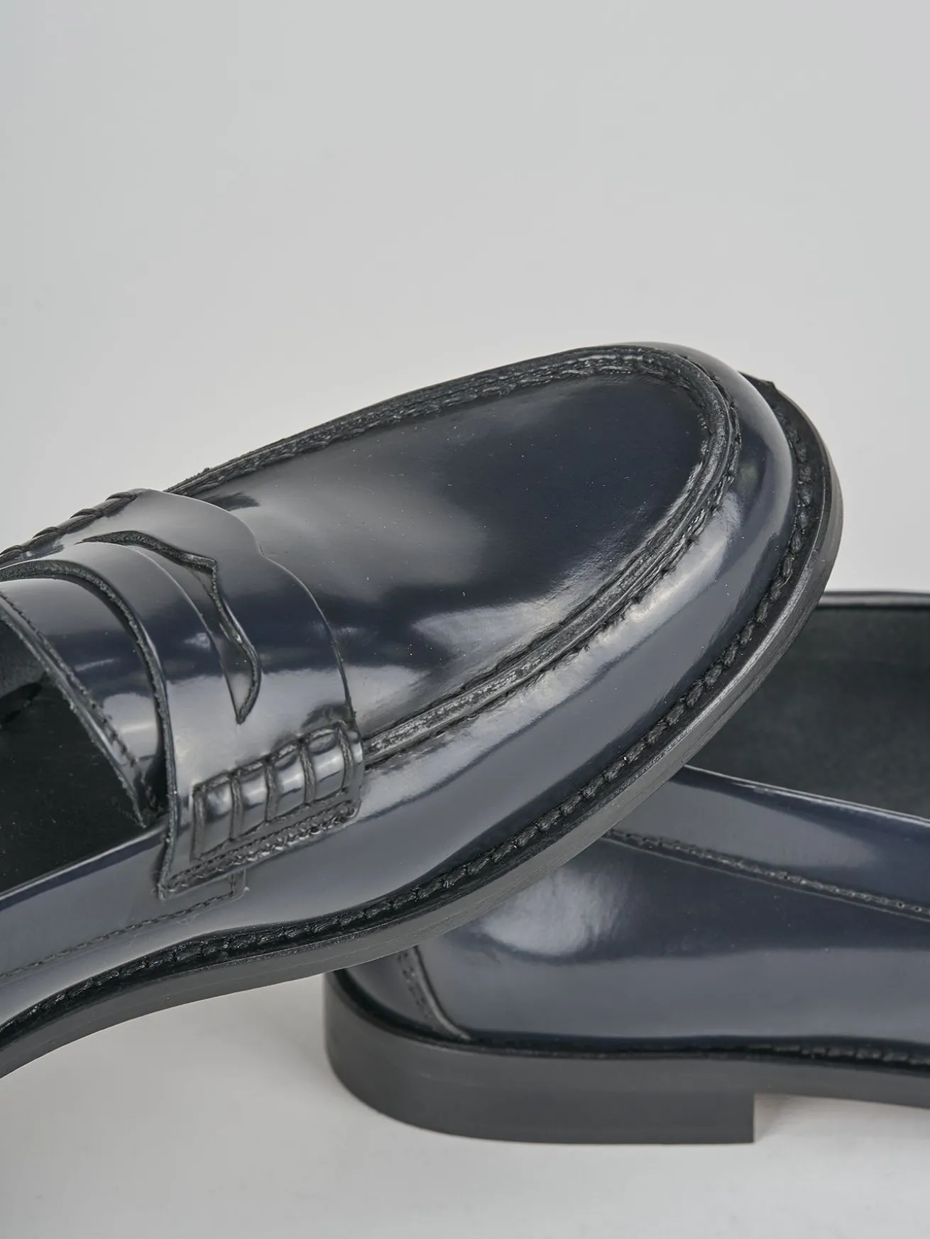 La tomaia in pelle spazzolata con effetto lucido dona un tocco raffinato e sofisticato, perfetto per il classico college style.