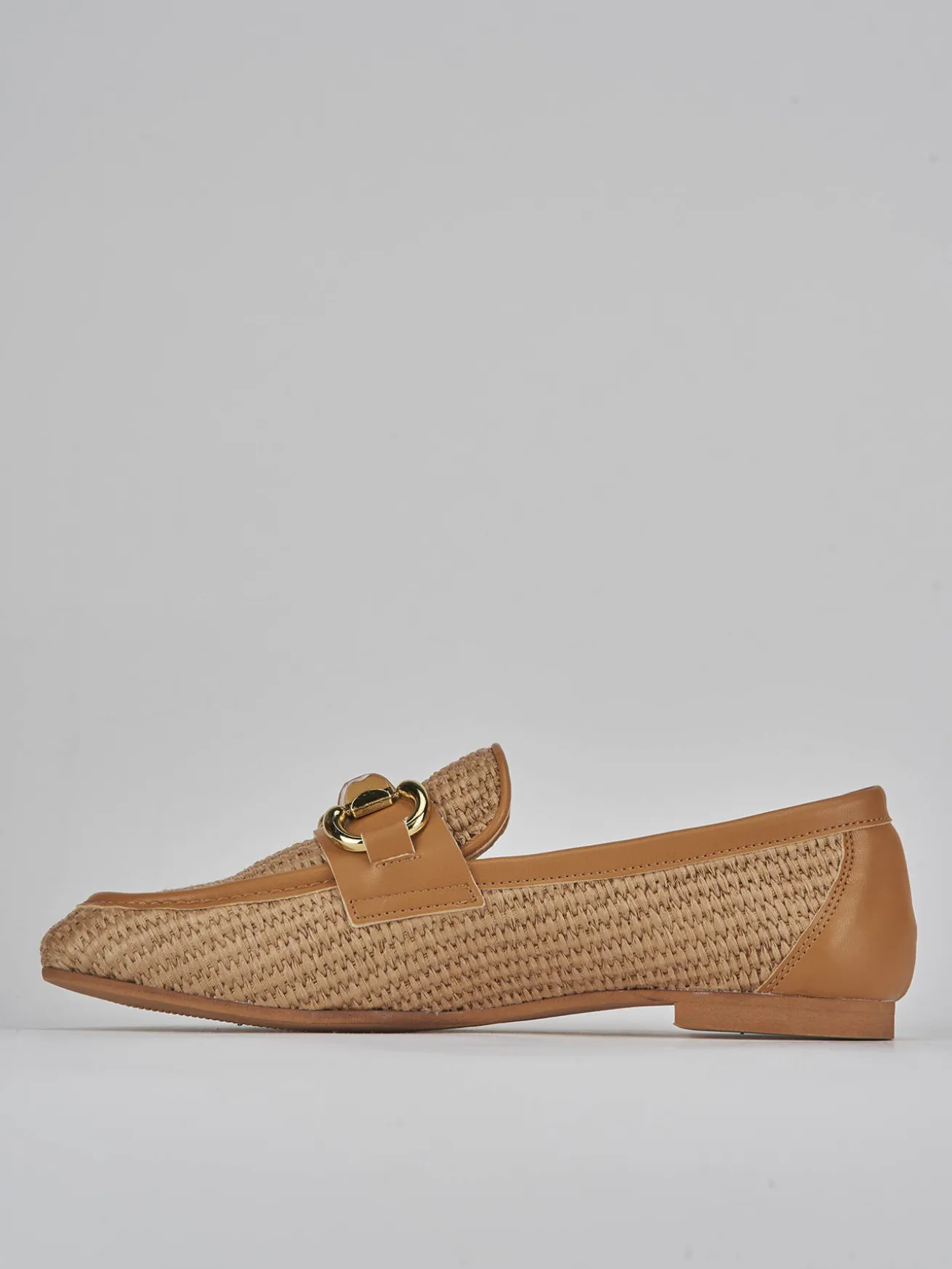 La tomaia è realizzata in morbida pelle e raffia, offrendo un design sofisticato e moderno.
