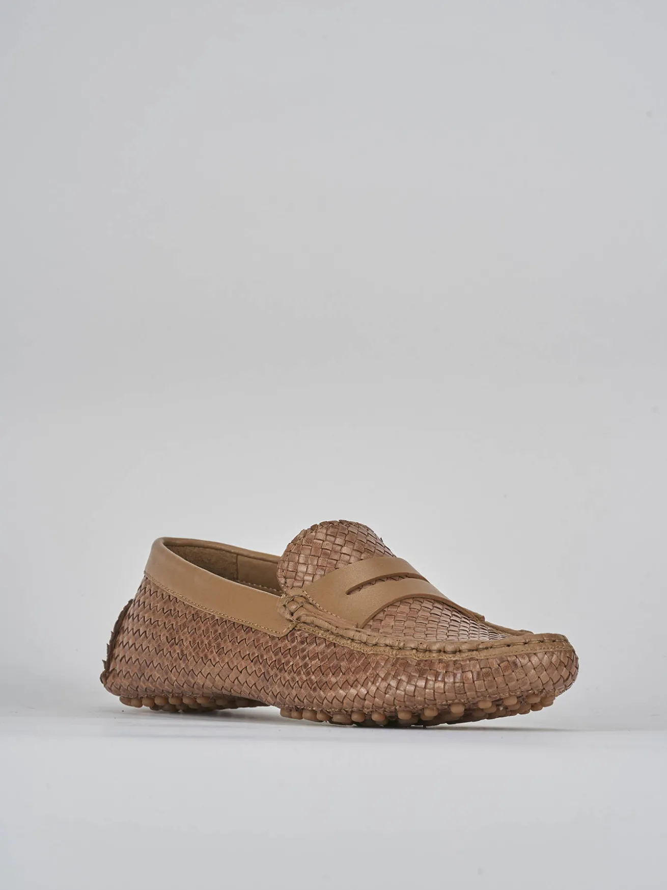 La tomaia in morbida pelle intrecciata regala un tocco di eleganza e artigianalità, mentre la punta leggermente squadrata e le cuciture a vista aggiungono dettagli sofisticati e moderni.