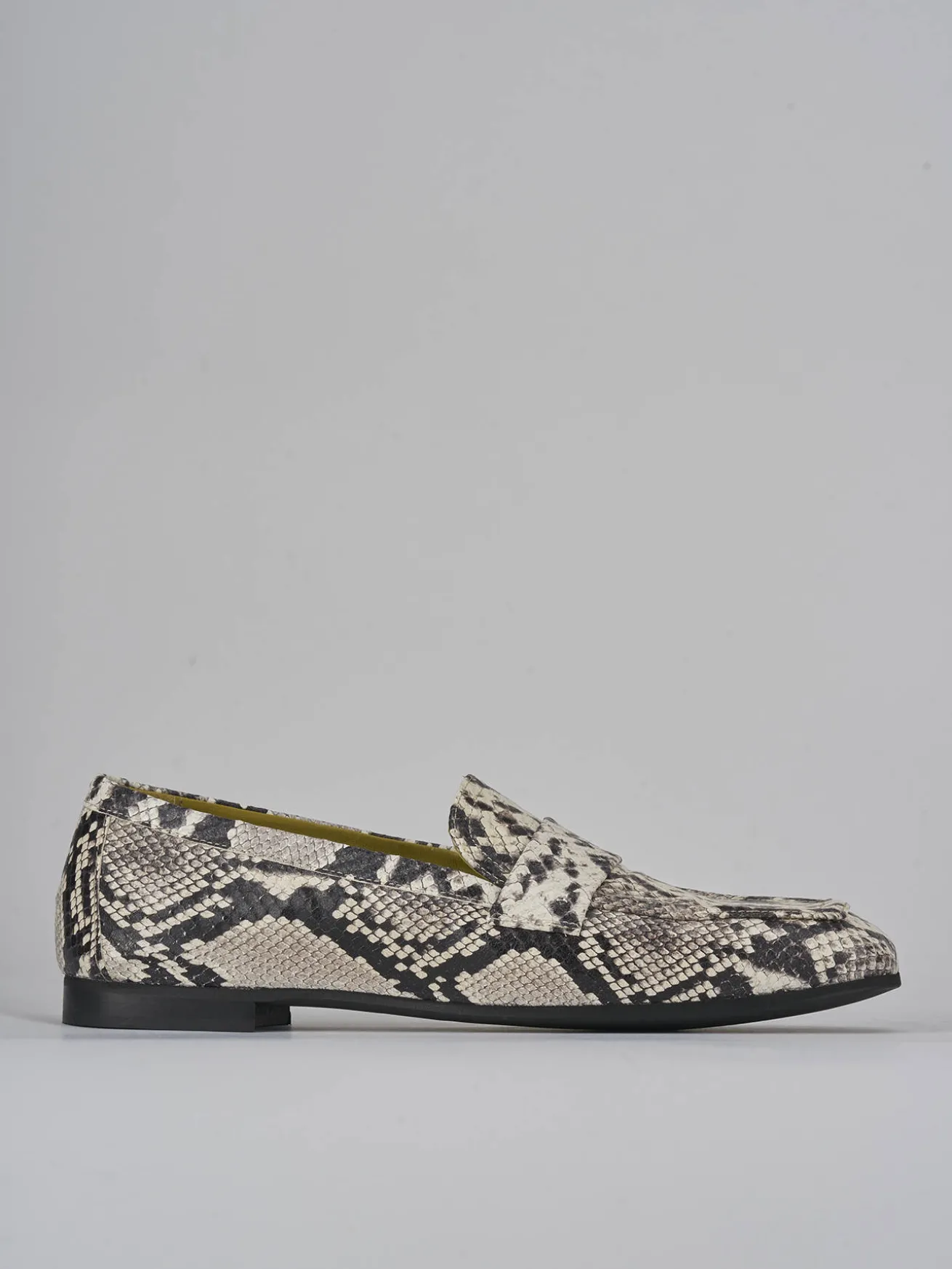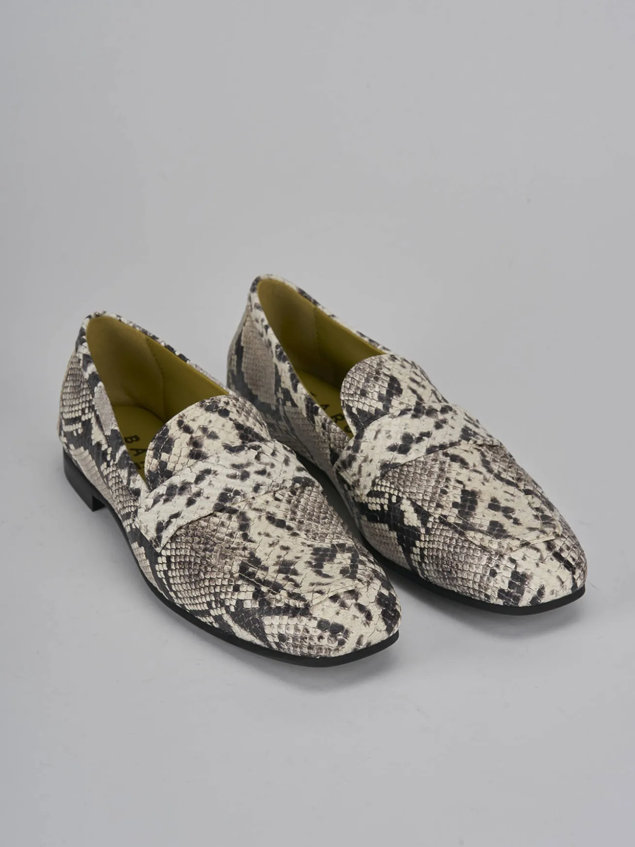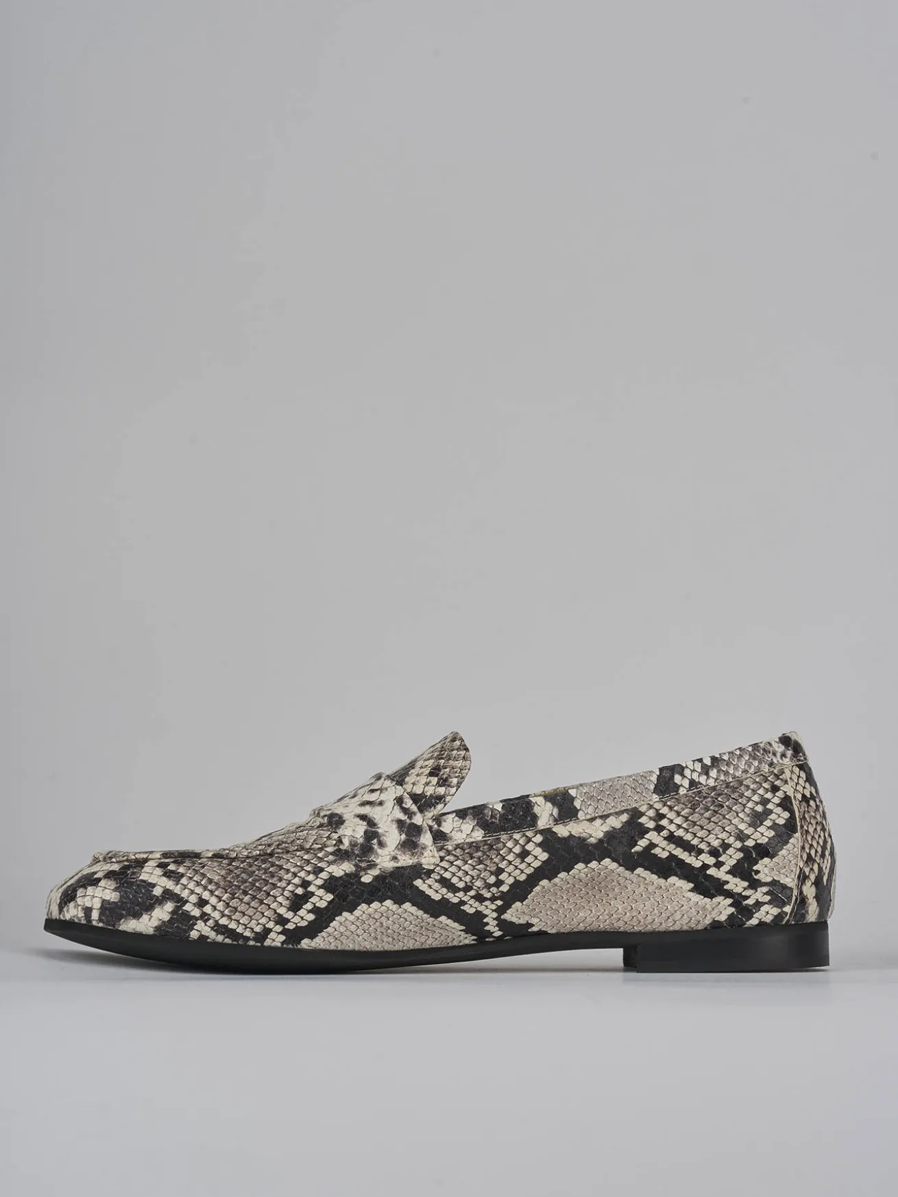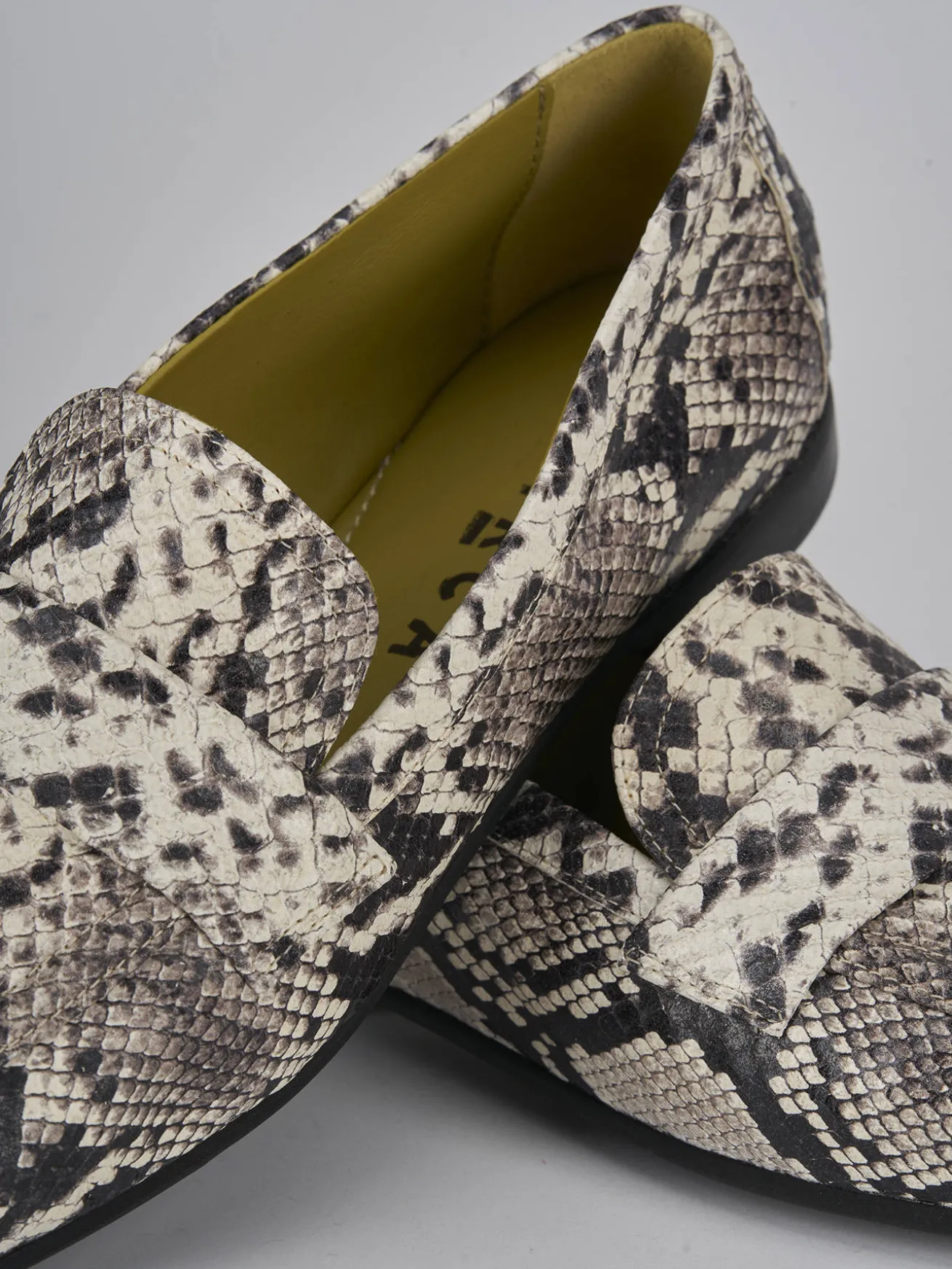 Questi mocassini da donna sono realizzati con una morbida tomaia in pelle, impreziosita da una stampa effetto pitonato che dona un tocco glamour.