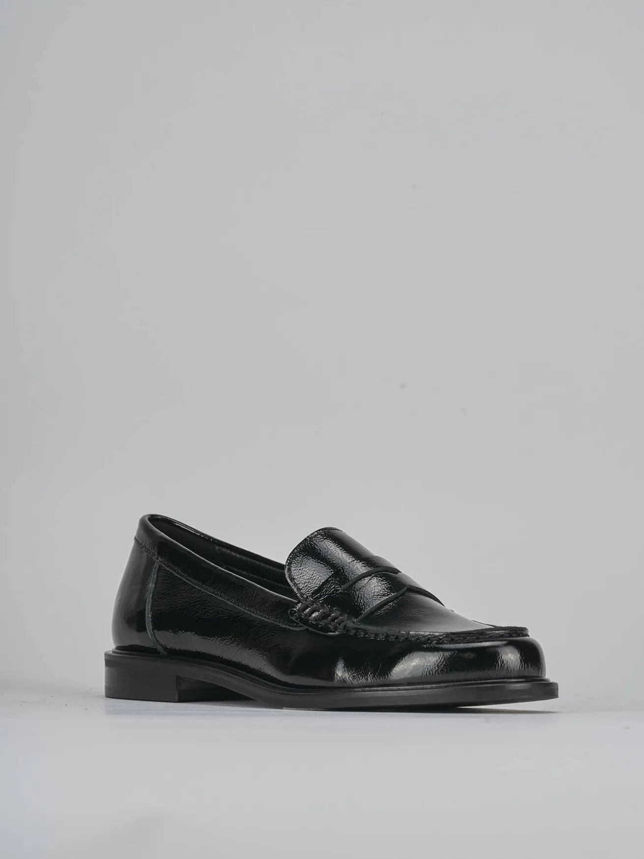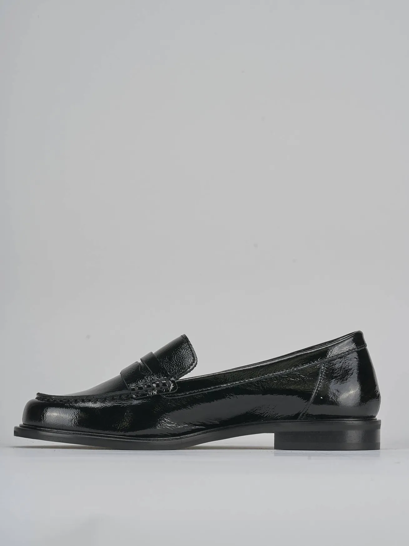 La tomaia in morbida pelle effetto verniciato aggiunge un tocco di lucentezza, mentre la punta leggermente squadrata conferisce un aspetto moderno e sofisticato.