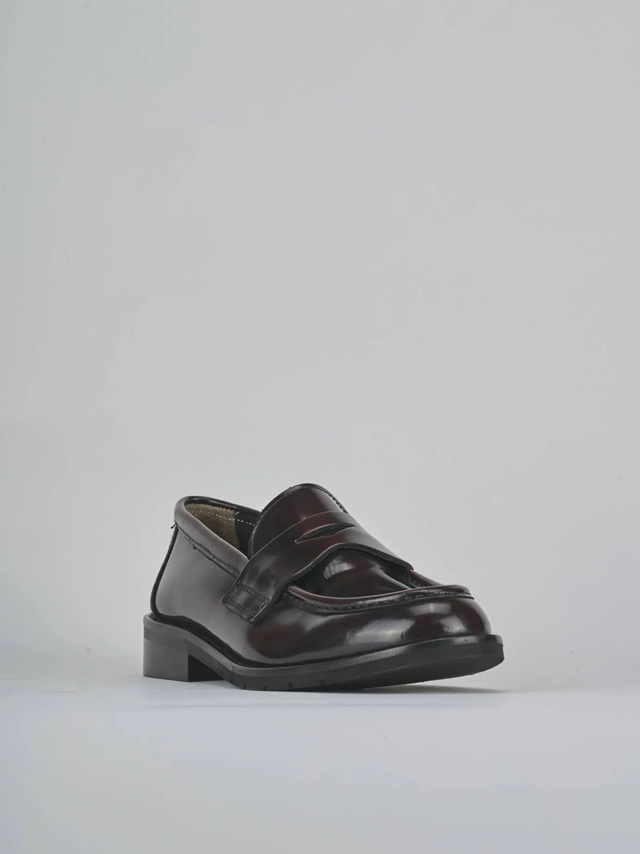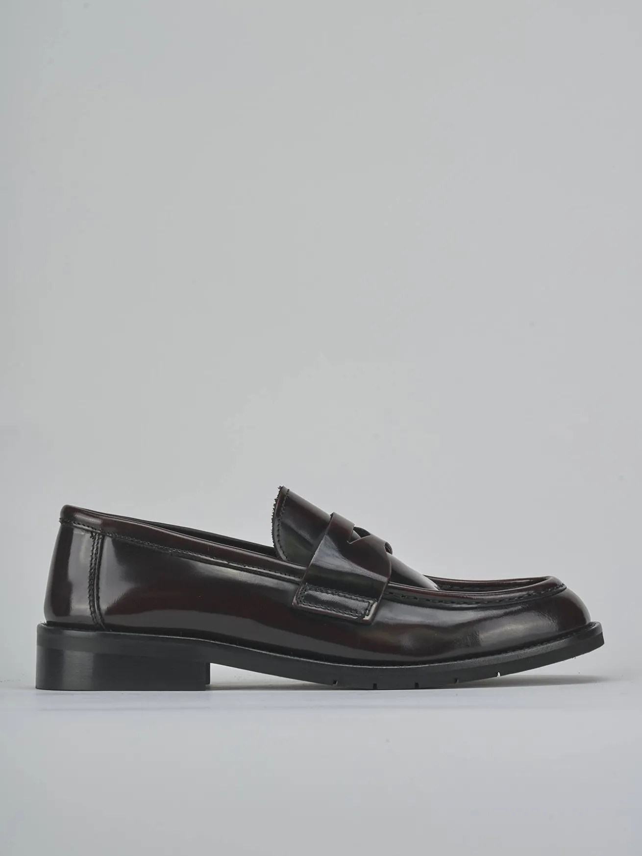 Realizzato con una morbida pelle abrasivata di un raffinato colore bordò, questo mocassino è ideale per la donna che cerca praticità e classe in un unico accessorio.