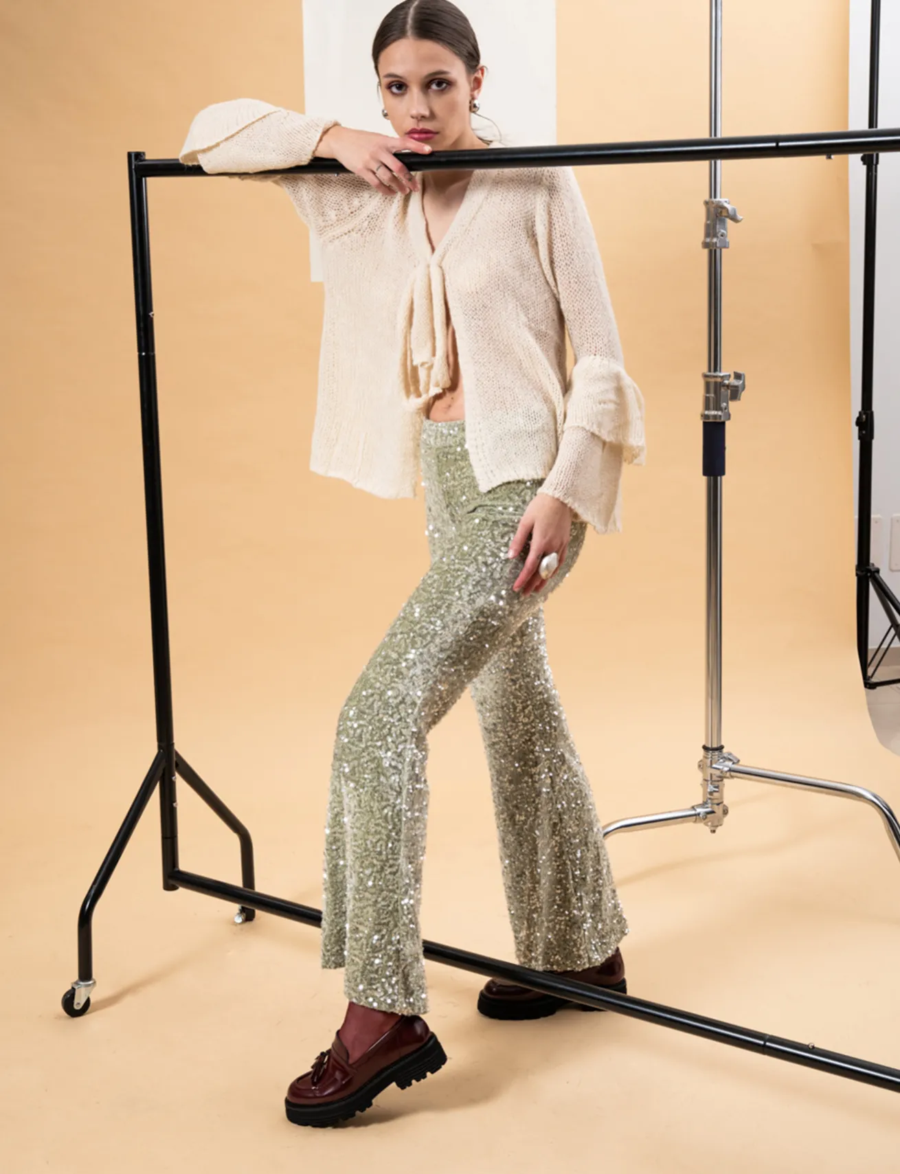 La fascia con nappine dona un dettaglio chic e distintivo.