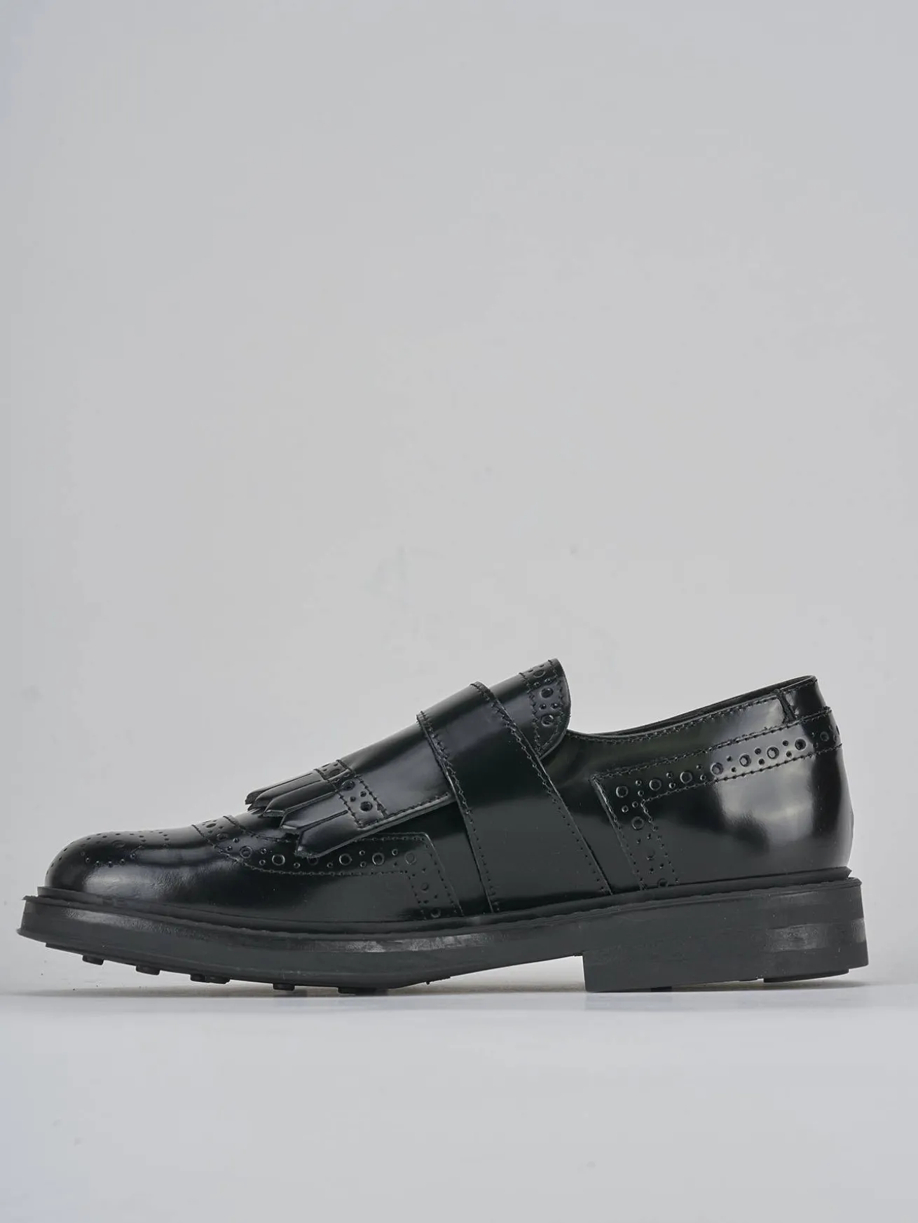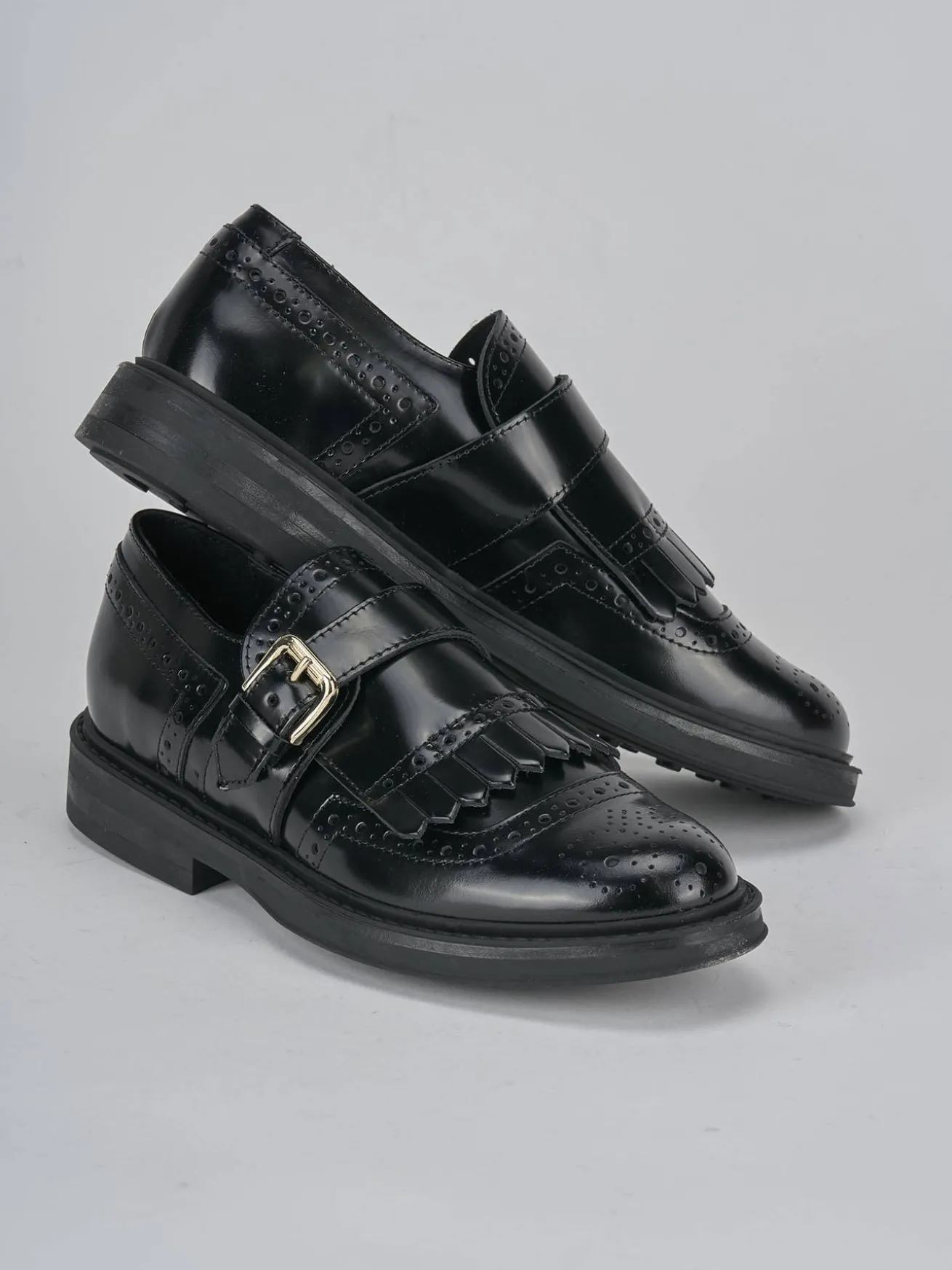 La lavorazione inglese è evidente nei dettagli, mentre la particolare frangia sul collo del piede, completata da una fibbia regolabile, dona un carattere distintivo.