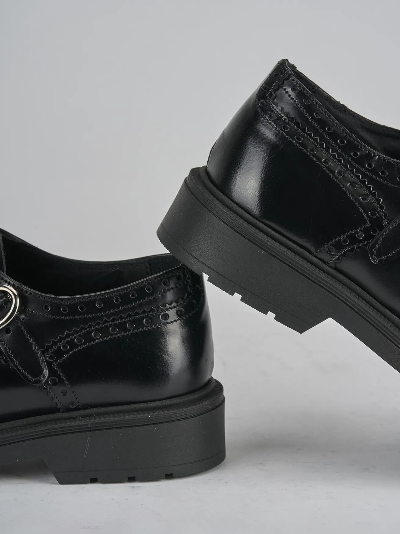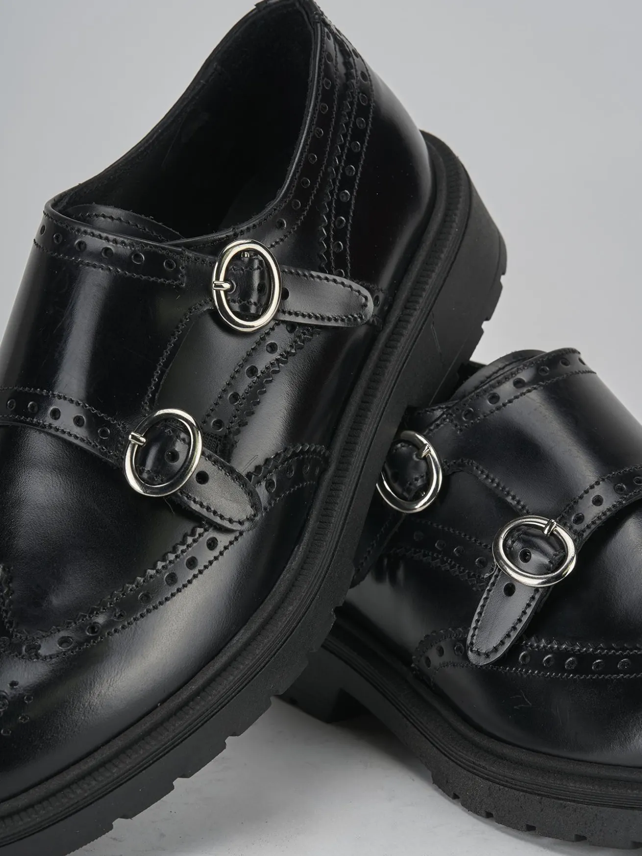 La chiusura con doppia fibbia regolabile non solo offre un look distintivo, ma anche una calzata personalizzata.