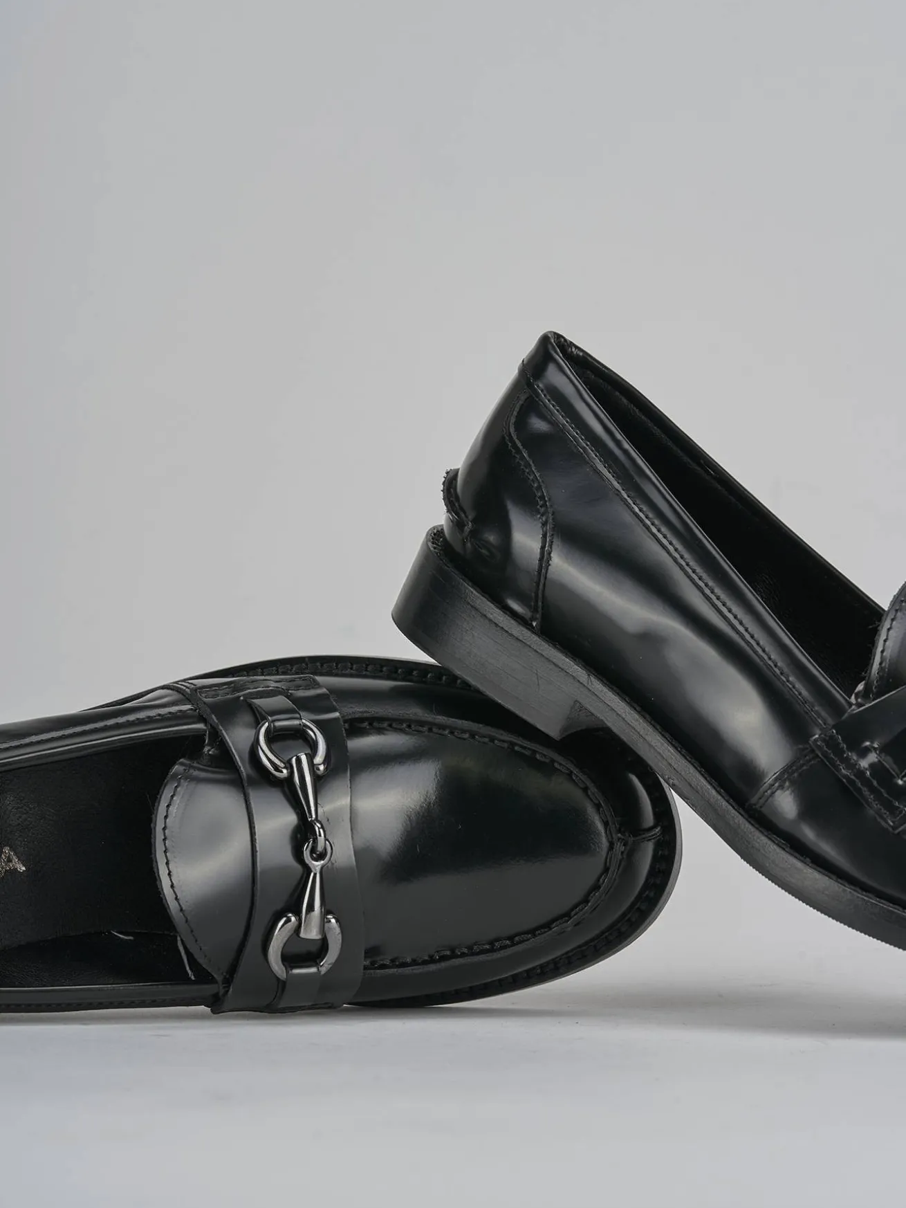 Realizzati in morbida pelle spazzolata nera, questi mocassini offrono un’eleganza senza tempo con una punta leggermente squadrata e cuciture in rilievo.