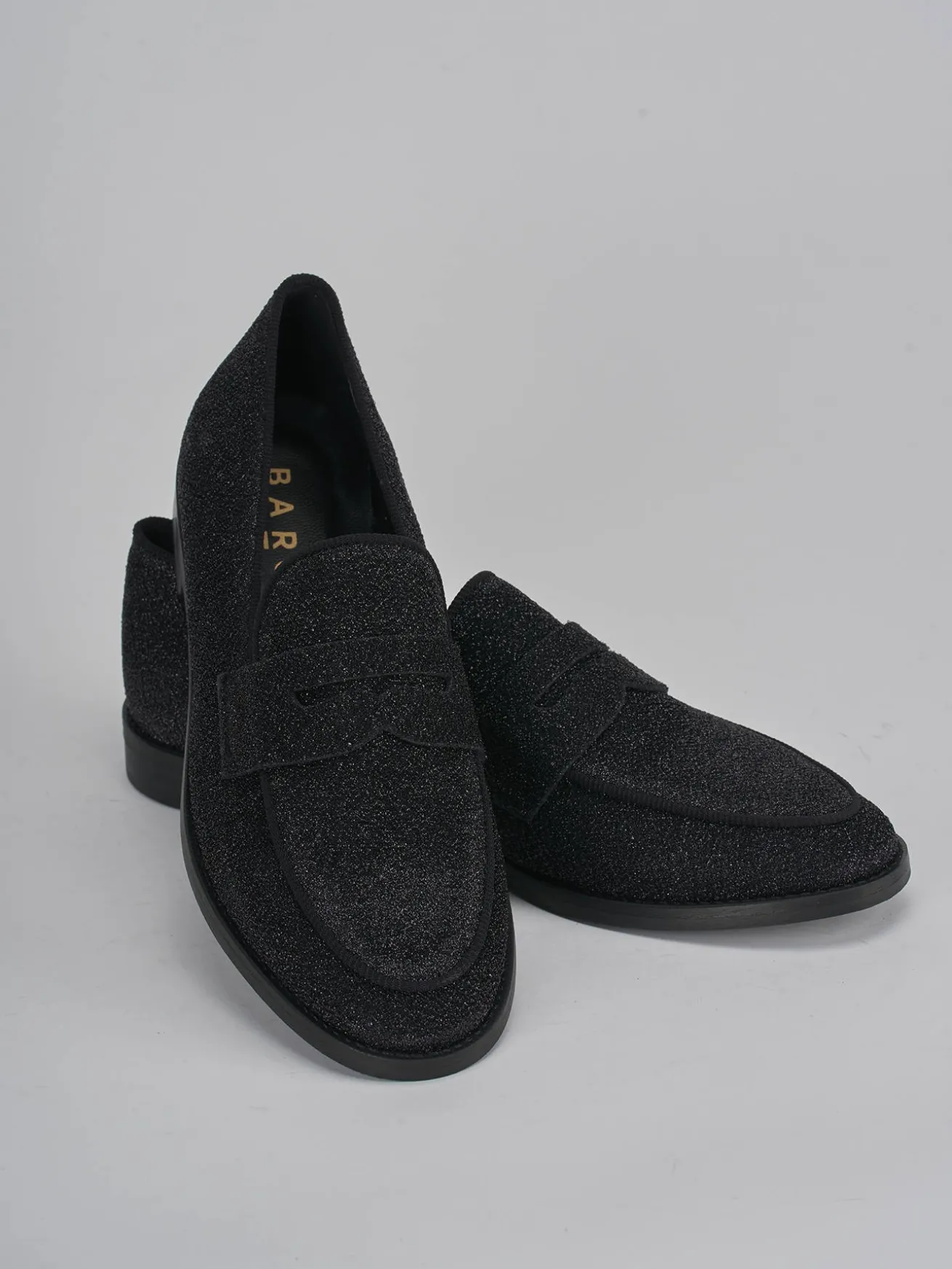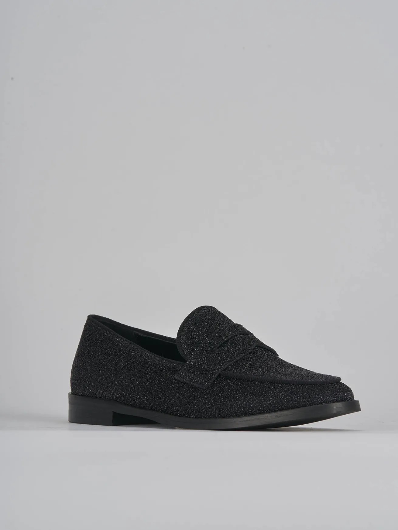 mocassino tacco 2 cm fondo in gomma e soletto interno in vera pelle. tomaia in morbida pelle foderata in tessuto glitterato, punta affusolata, cuciture a vista, mascherina a bocca di leone per un tocco fun ai tuoi look.