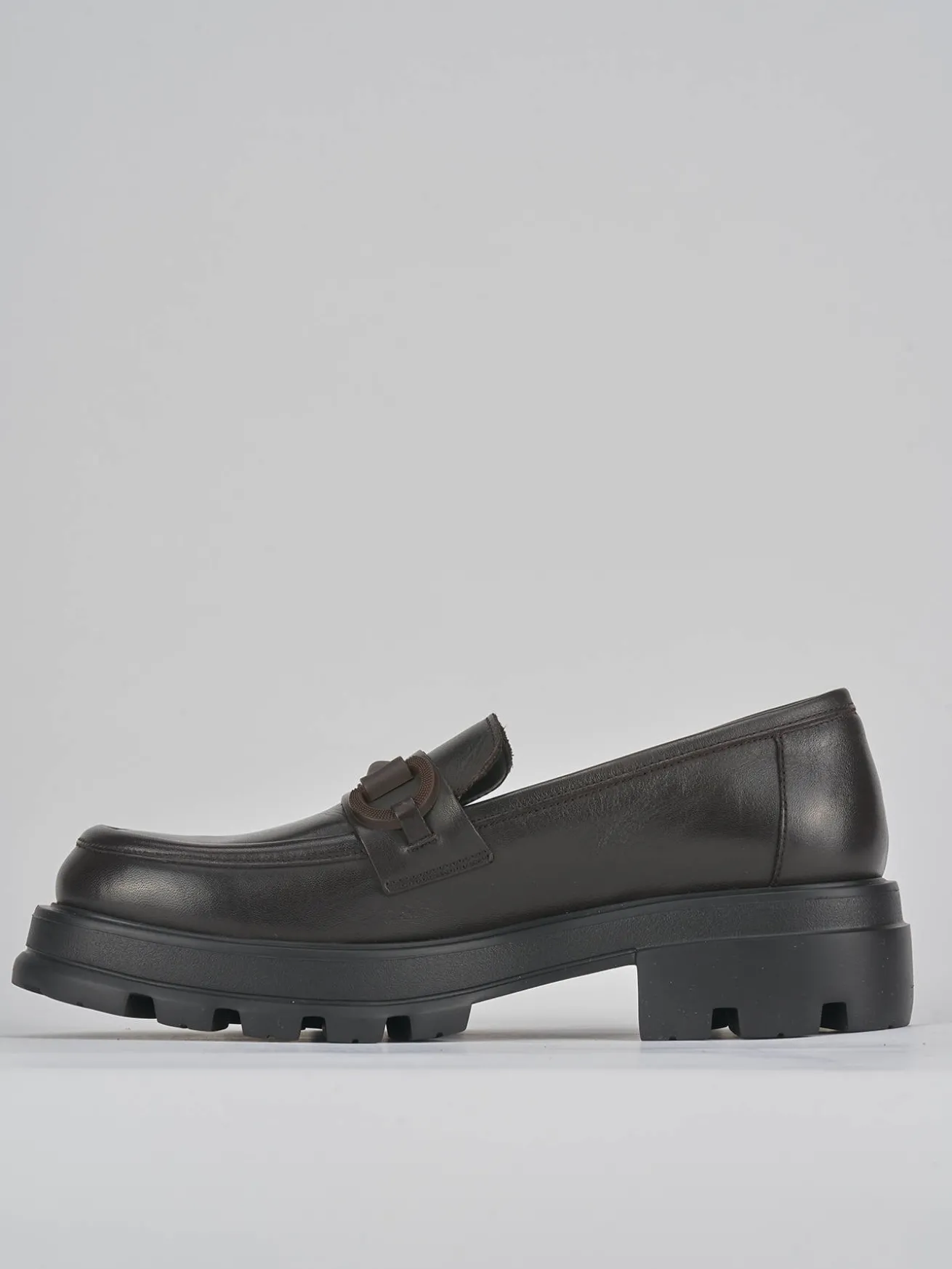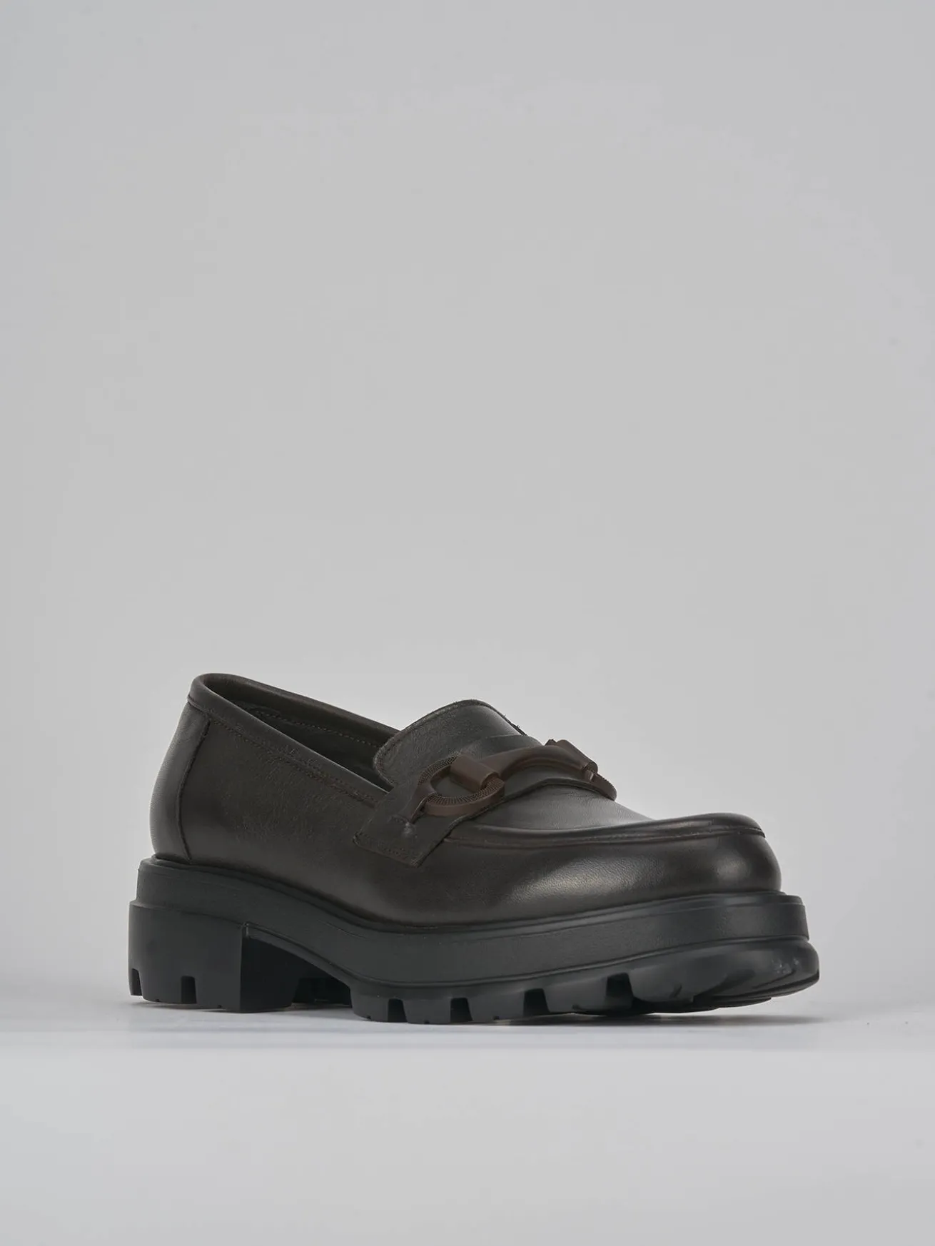 Mocassino tacco 2 cm fondo in gomma e soletto interno in vera pelle. tomaia in morbida pelle, punta leggermente squadrata, cuciture in rilievo, morsetto in tinta opaco. fondo extra light per il massimo del comfort.