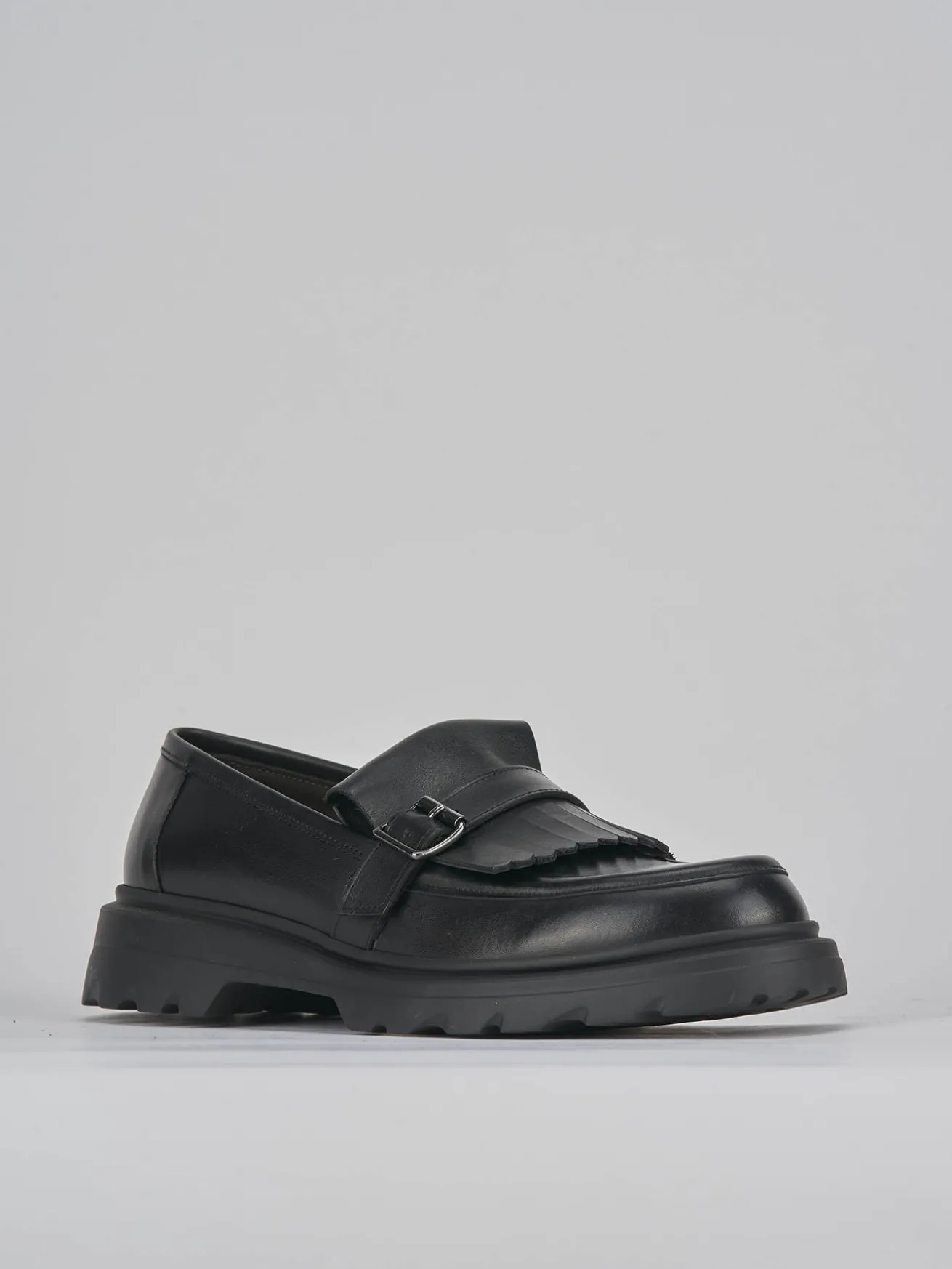 mocassino tacco 3 cm fondo in leggera gomma extralight e soletta interna in vera pelle. tomaia in morbida pelle, punta leggermente squadrata, cuciture fatte a mano a vista, frange e fibbia per un look davvero cool.