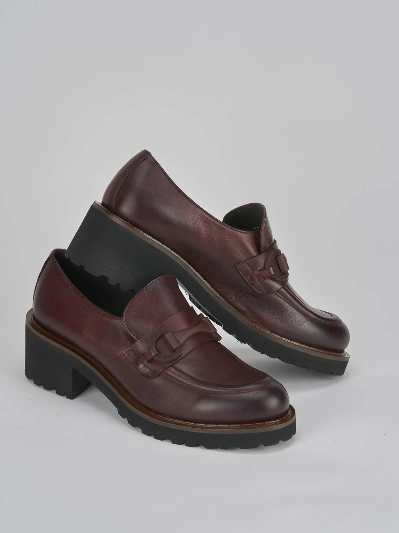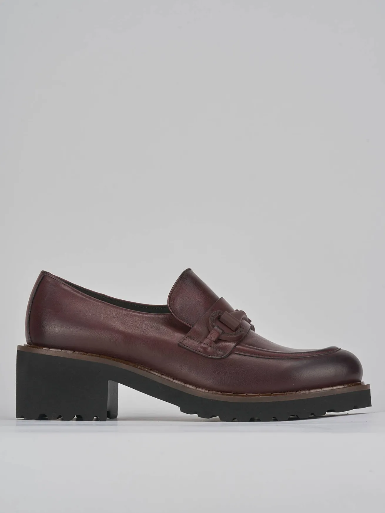 mocassino tacco 5 cm fondo in gomma e soletto interno in vera pelle. tomaia in morbida pelle, punta leggermente squadrata, cuciture norvegesi in rilievo, morsetto in tinta e opaco e tacco grosso per un look cool.