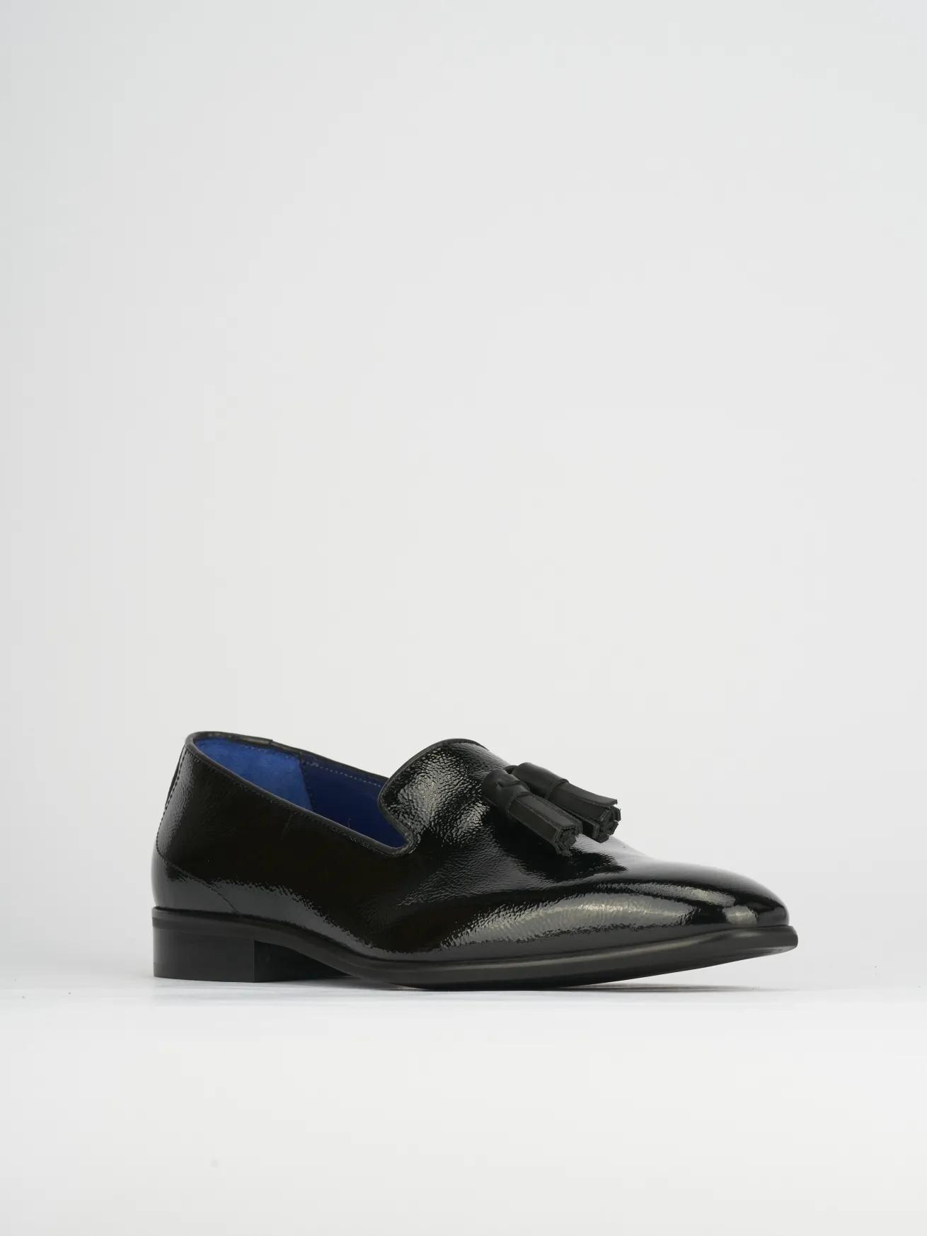 La tomaia in morbida pelle verniciata dona un aspetto raffinato, arricchito da nappine che aggiungono un tocco di classe.