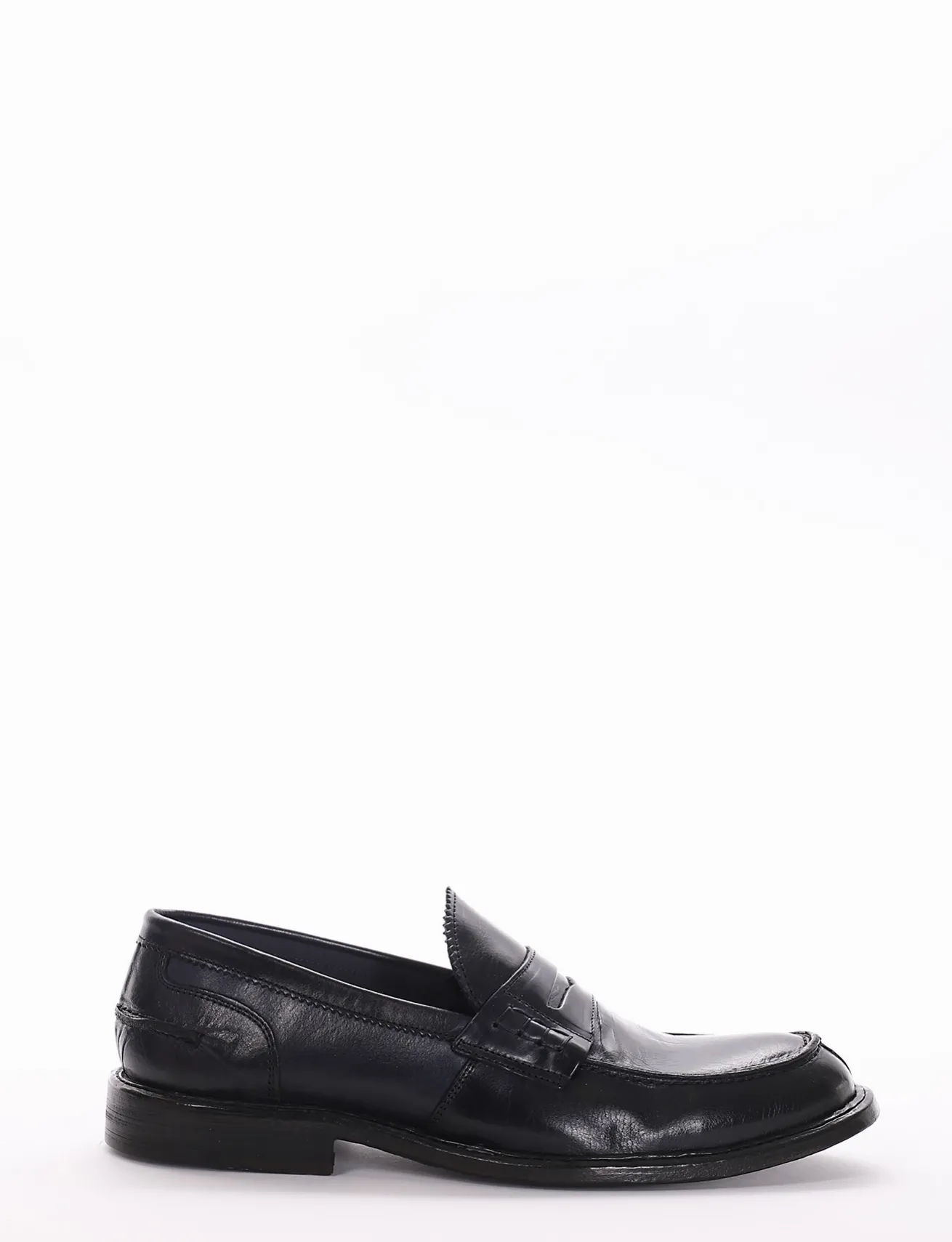 mocassino tacco 2 cm, fondo in cuoio e soletto interno in vera pelle. Tomaia in morbidissima pelle nappata effetto invecchiato, con particolarissima fascetta in pelle sul collo del piede. Particolarissimo fondo extra morbidezza.