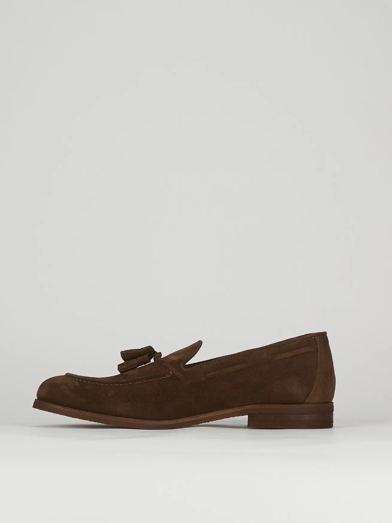 La tomaia in camoscio è arricchita da un raffinato laccetto infilato e una nappina sul collo del piede, aggiungendo un tocco di classe al tuo outfit.