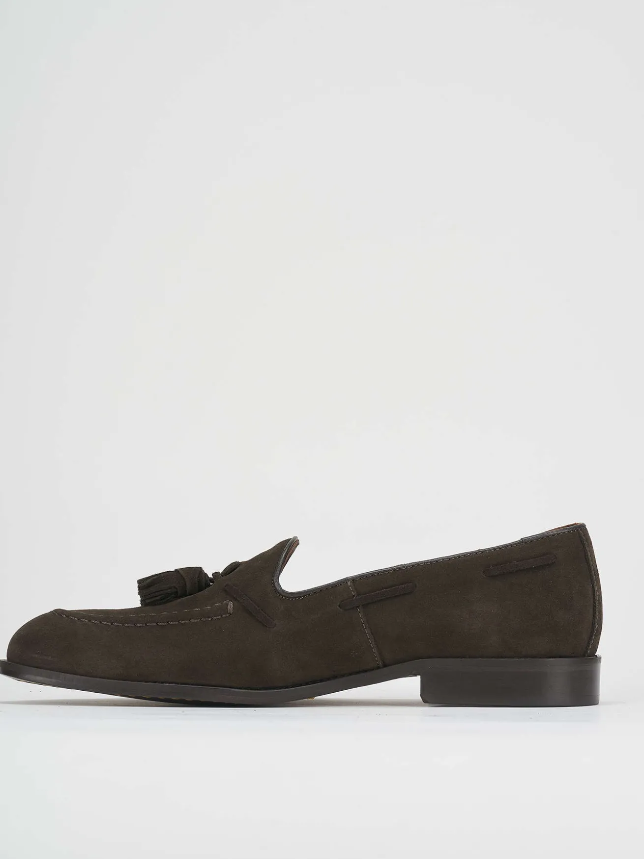 Realizzato in morbido camoscio, questo mocassino presenta una tomaia raffinata con una punta arrotondata che aggiunge un tocco di classe.