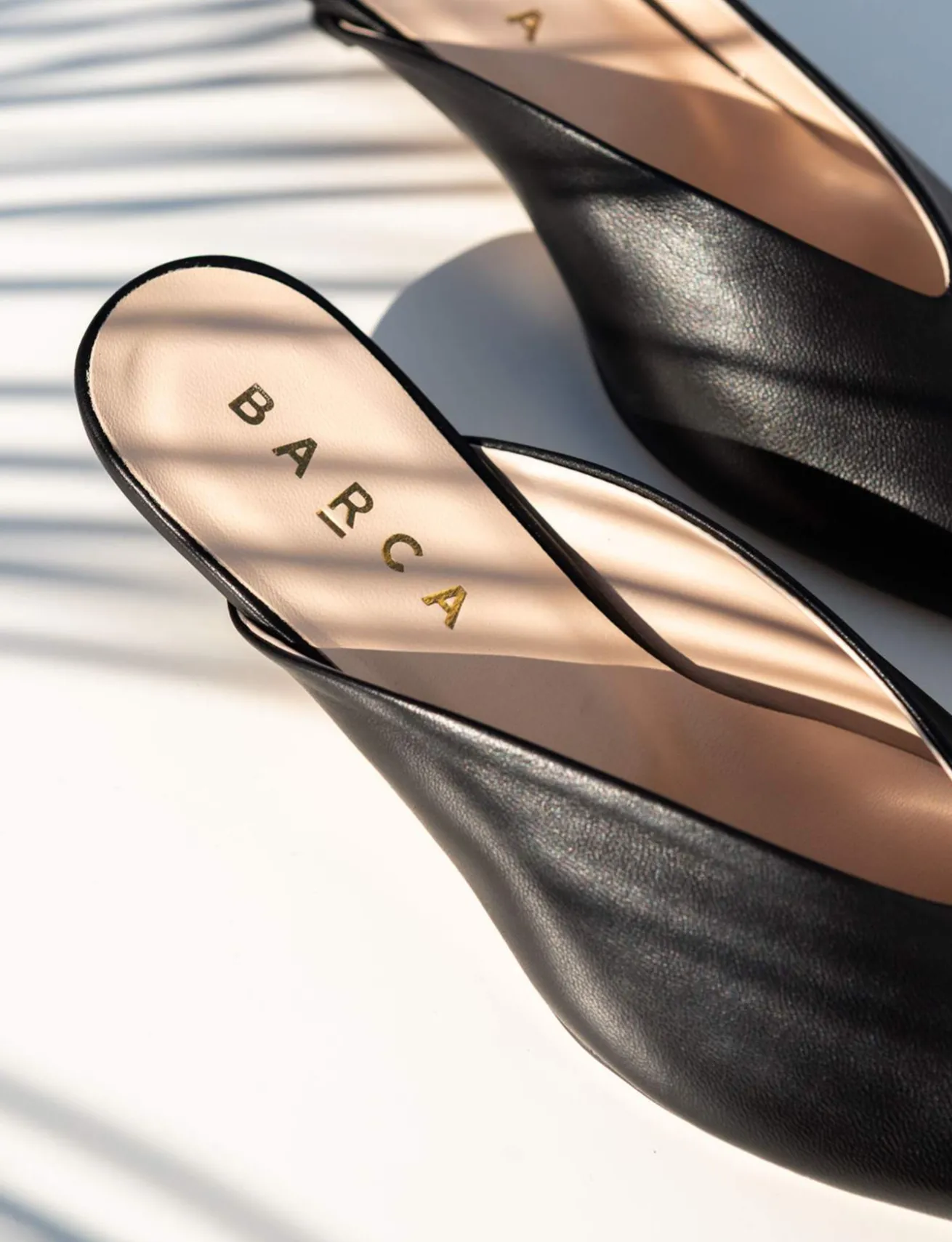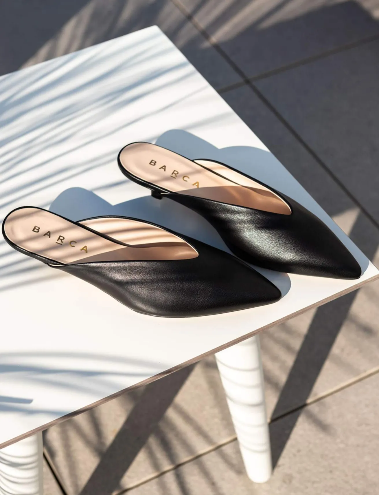 Sabot tacco 4 cm fondo in cuoio e soletto interno in vera pelle. Tomaia in morbida pelle nappata, punta sfilata, scollo a ‘V’, liscio e comodo tacco rocchetto. Perfetto per qualsiasi occasione dalla più divertente a quella più solenne.