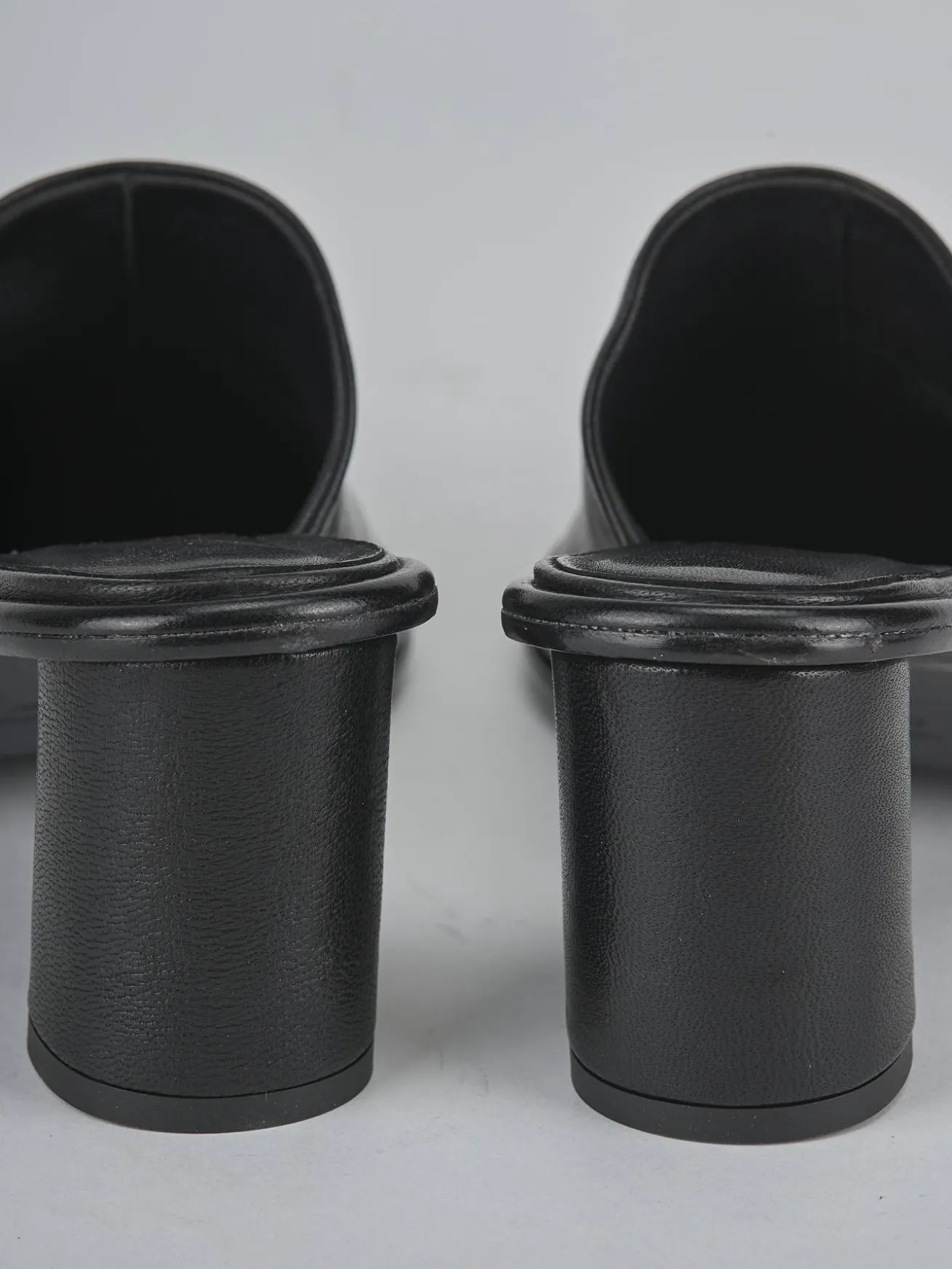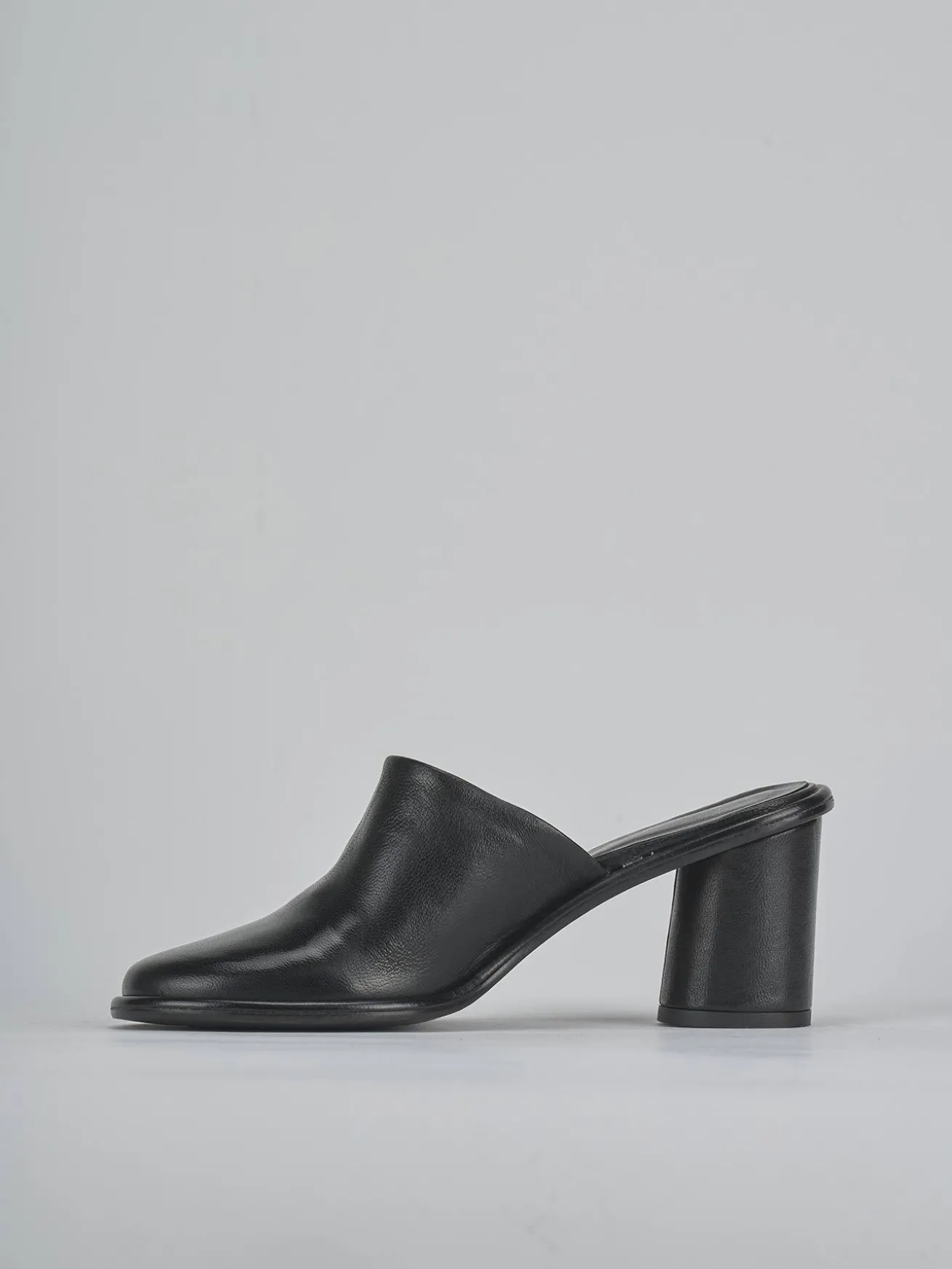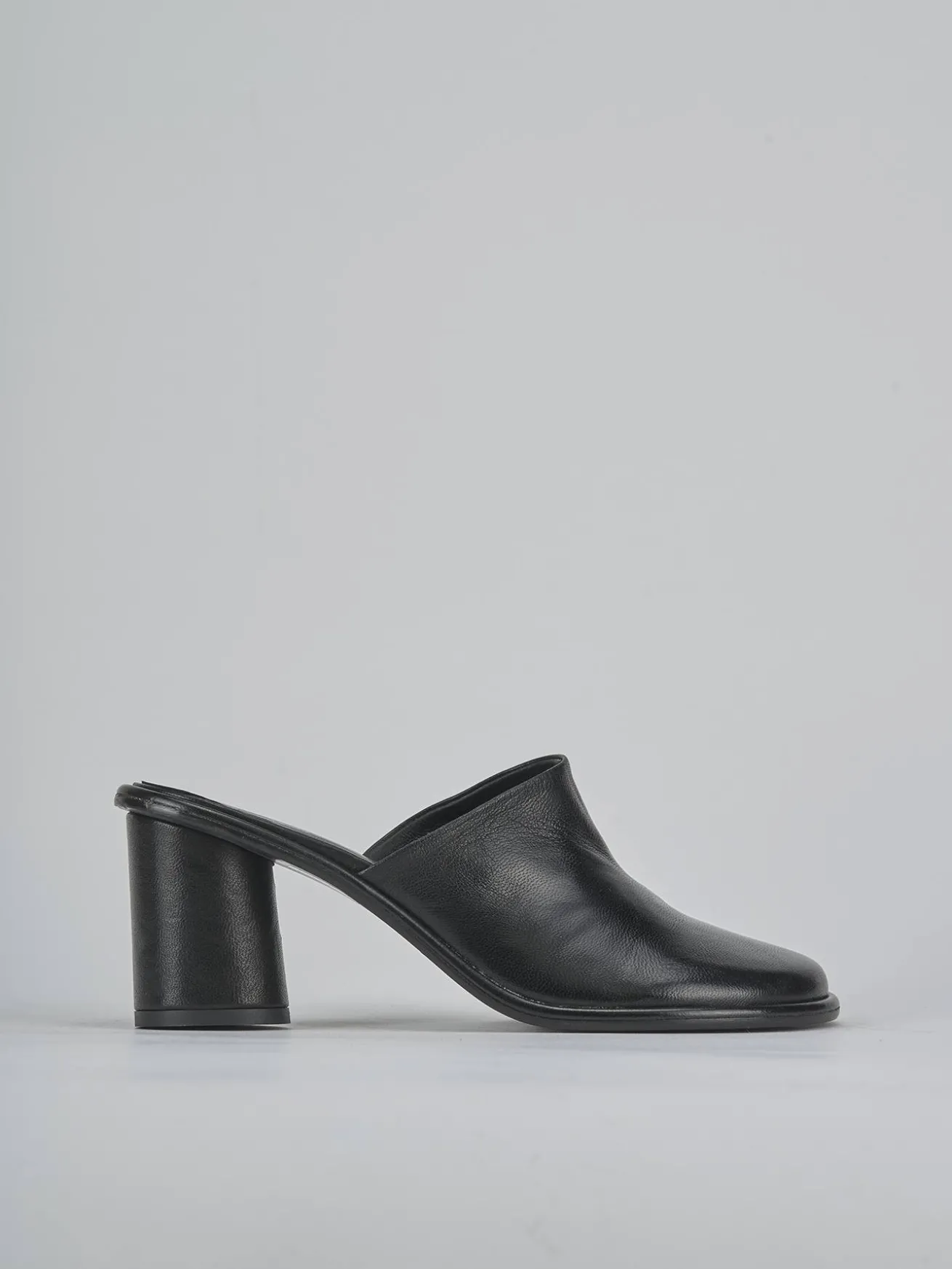 Sabot tacco 6 cm fondo in cuoio e soletto interno in vera pelle. Tomaia in morbida pelle, punta affusolata, cuciture a mano, doppio guardolo e nuovissimo tacco a cono per un look cool.