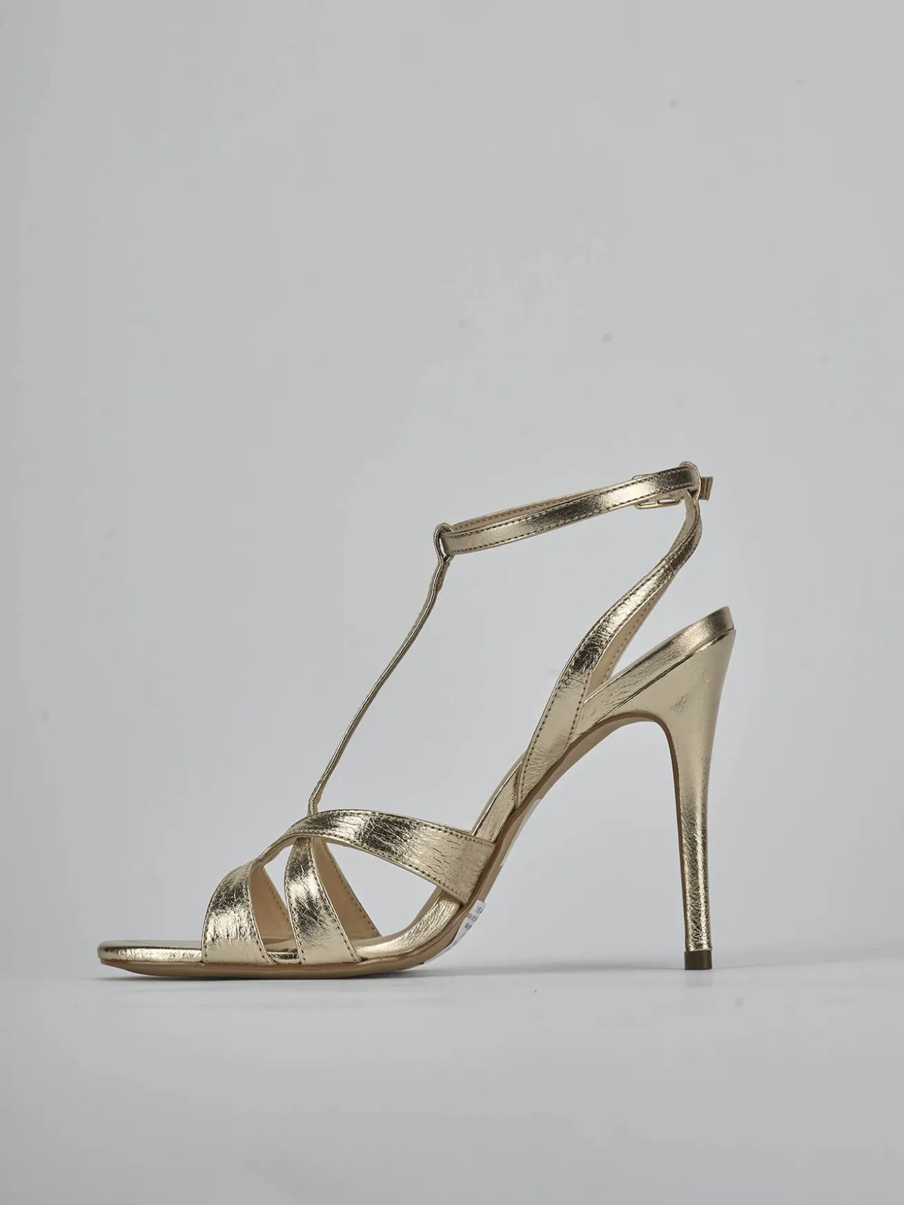 Realizzato in morbida pelle laminata color oro, questo sandalo cattura l’attenzione con il suo design elegante e sofisticato.