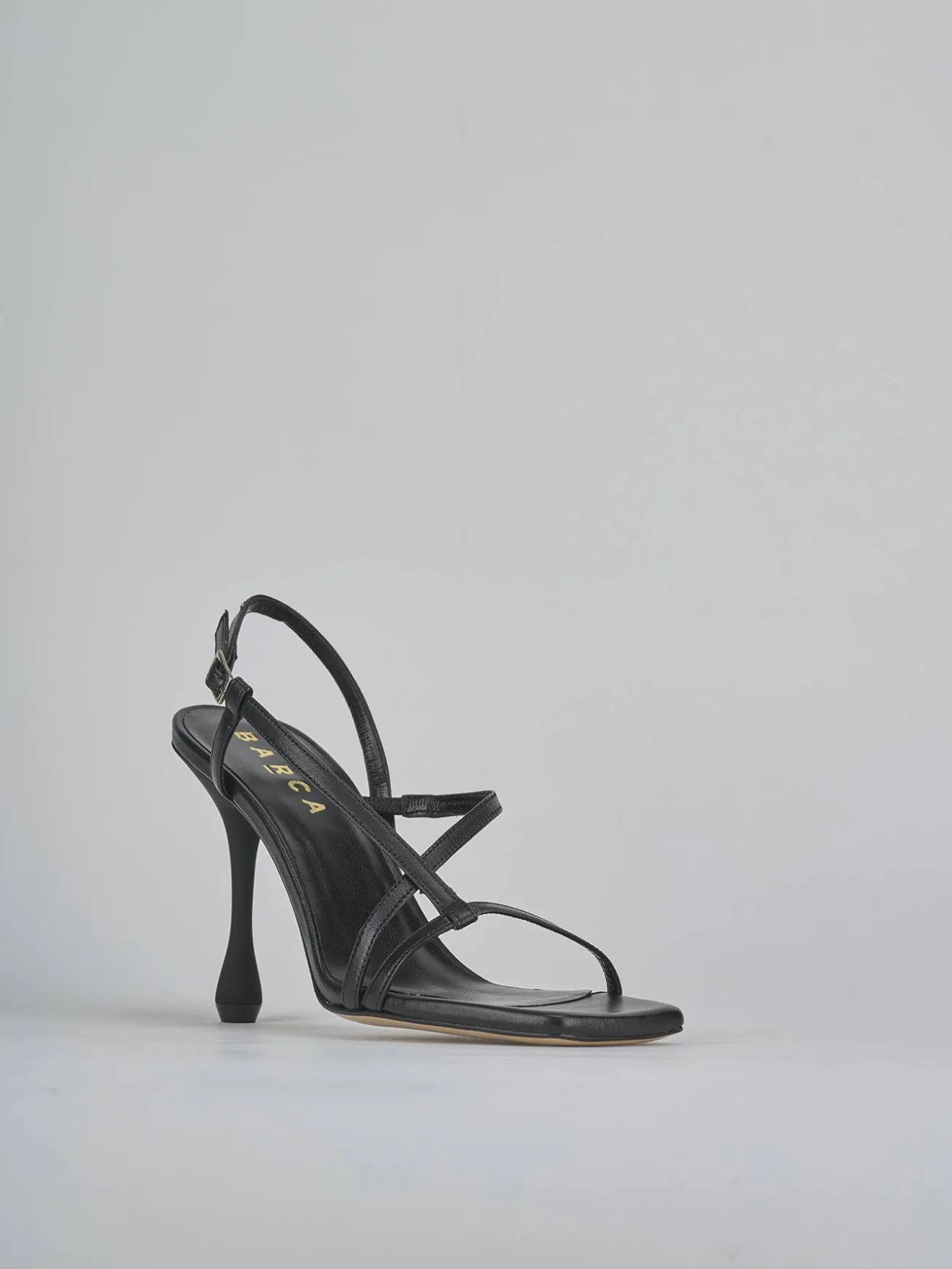 La punta squadrata e le fascette incrociate aggiungono un tocco moderno e sofisticato.