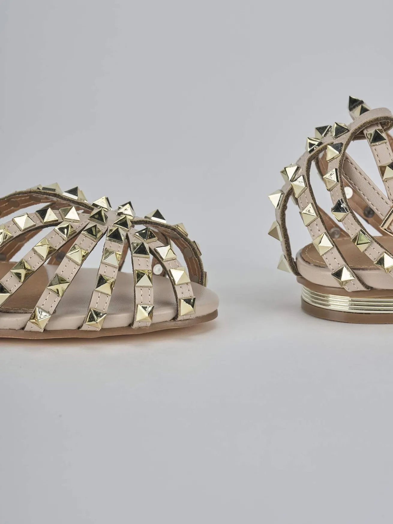La tomaia presenta una punta affusolata e affascinanti fascette sia sulla punta che sul tallone, arricchite da borchie che aggiungono un tocco di modernità.