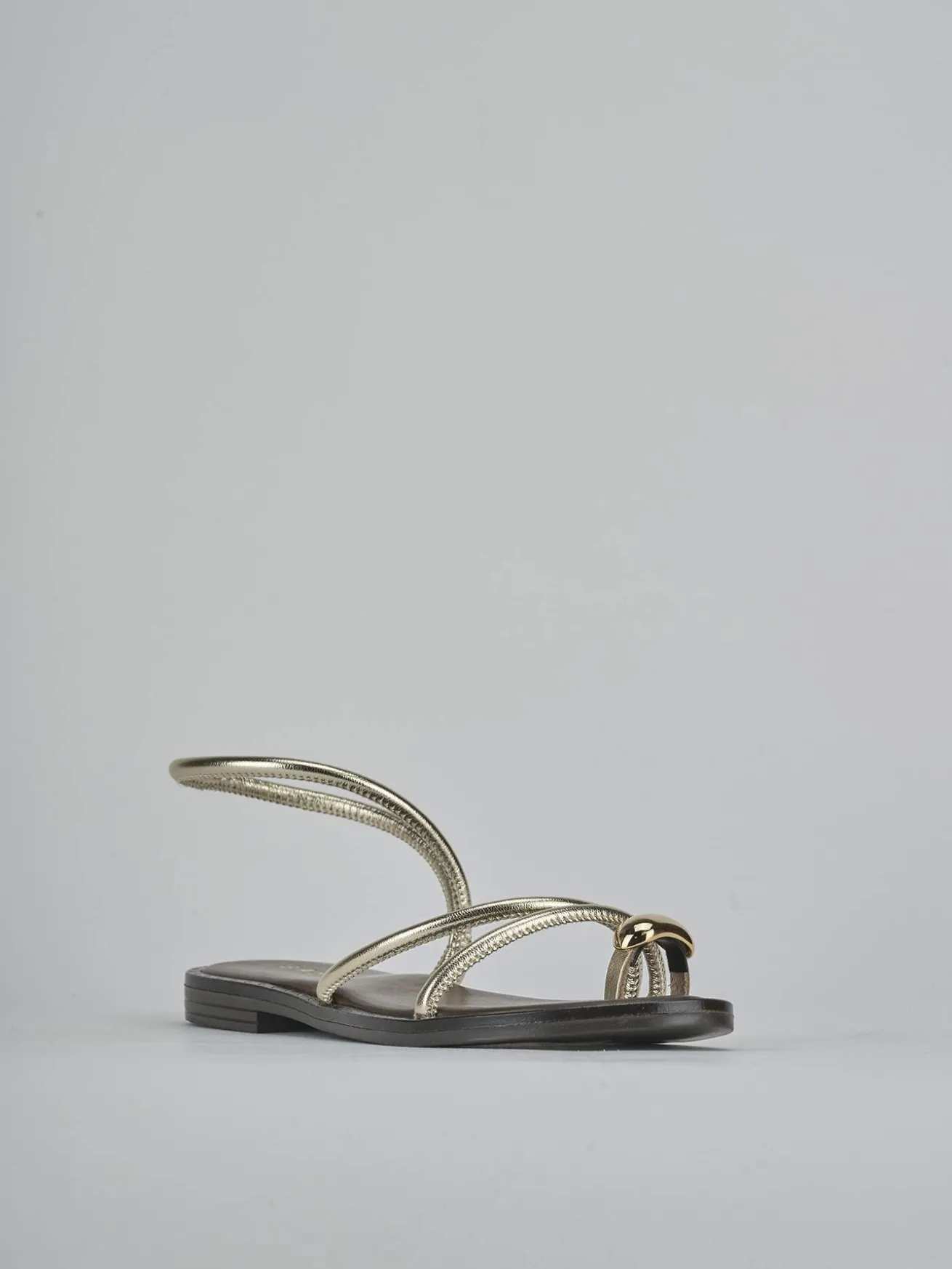 Realizzati in un raffinato laminato color oro, questi sandali sono un must-have per la donna moderna che non vuole rinunciare al comfort.