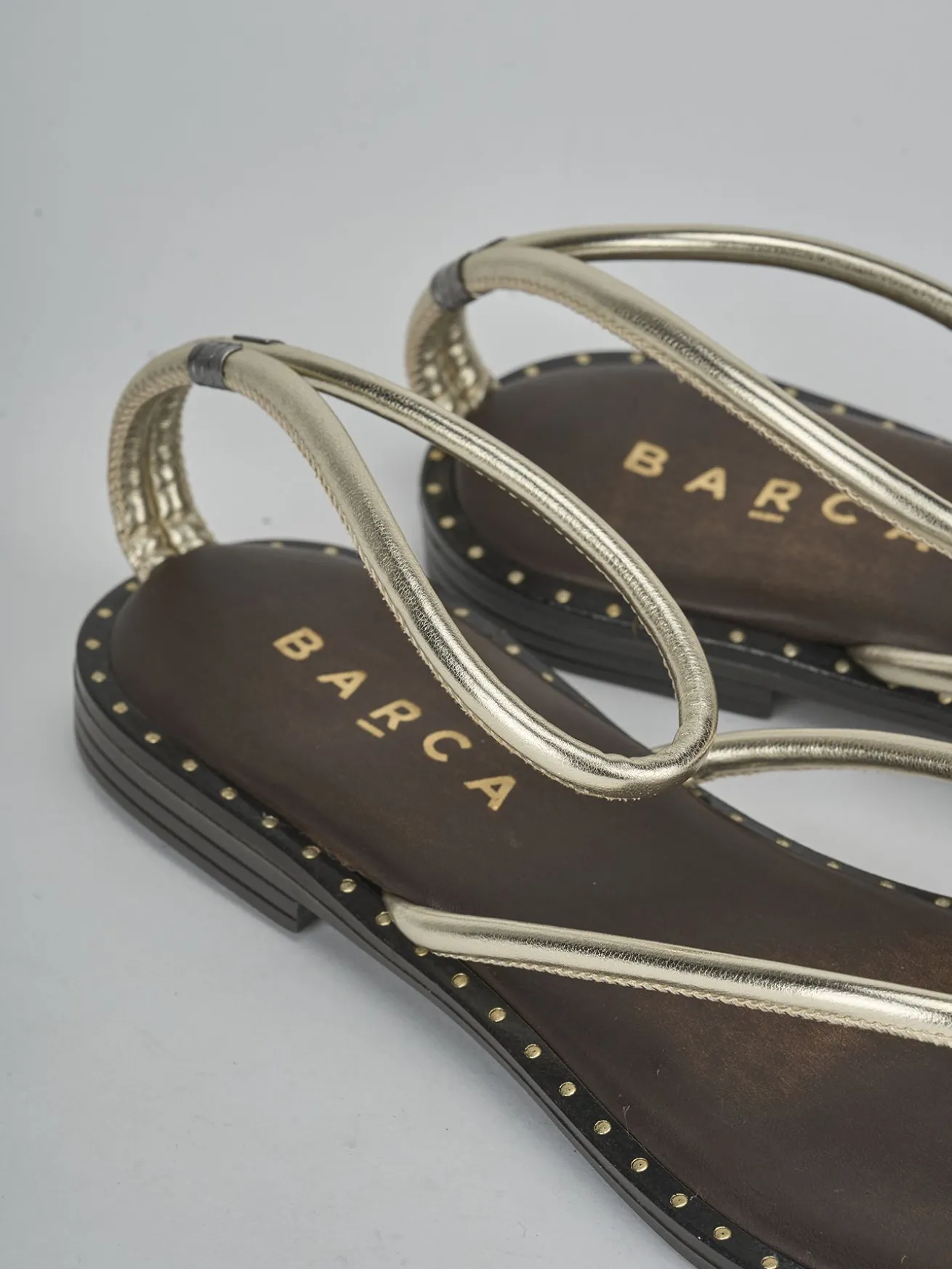 Questi sandali con tacco di 1 cm sono realizzati in un raffinato laminato oro, perfetti per aggiungere un tocco di lusso al tuo look quotidiano.