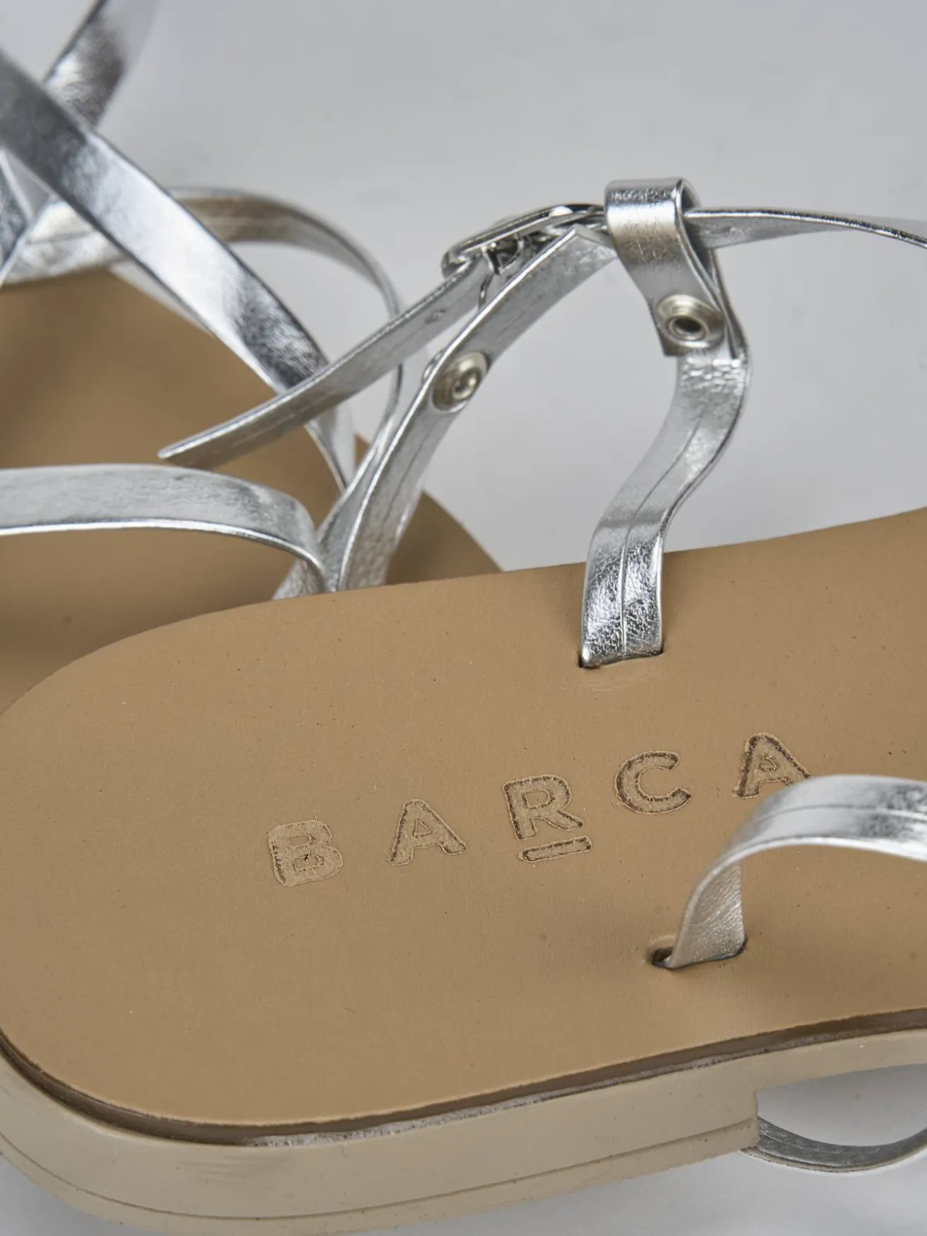Realizzati in pelle laminata color argento, questi sandali sono una scelta versatile e raffinata per ogni occasione.