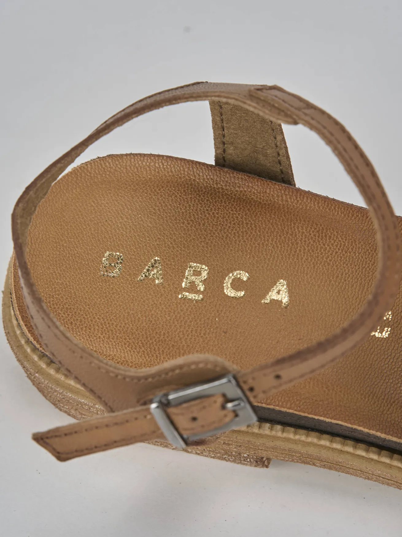 Realizzati in pregiata pelle marrone, questi sandali presentano una tomaia morbida con un design a fascia ampia, arricchita da fasce finemente laserate.